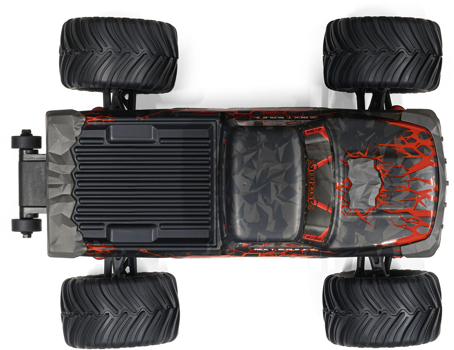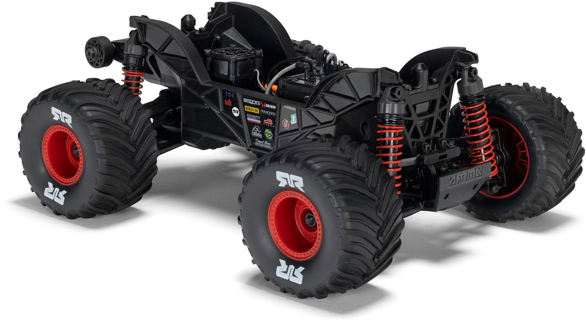 The QUAKE GROM's suspension is tuned to leap, land, and keep rolling. High-travel shocks soak up jumps and bumps. The deep tub chassis keep out rocks and debris, so you bash harder without worrying about what's in your path. A high center of gravity gives the QUAKE GROM that telltale monster truck stance, letting it clear gravel and dirt piles with ease. Got a driveway, a dirt patch, or an empty stretch of garage? The QUAKE GROM handles them all, and its size means you can have fun indoors too—when the weather turns or you just want to keep bashing.
