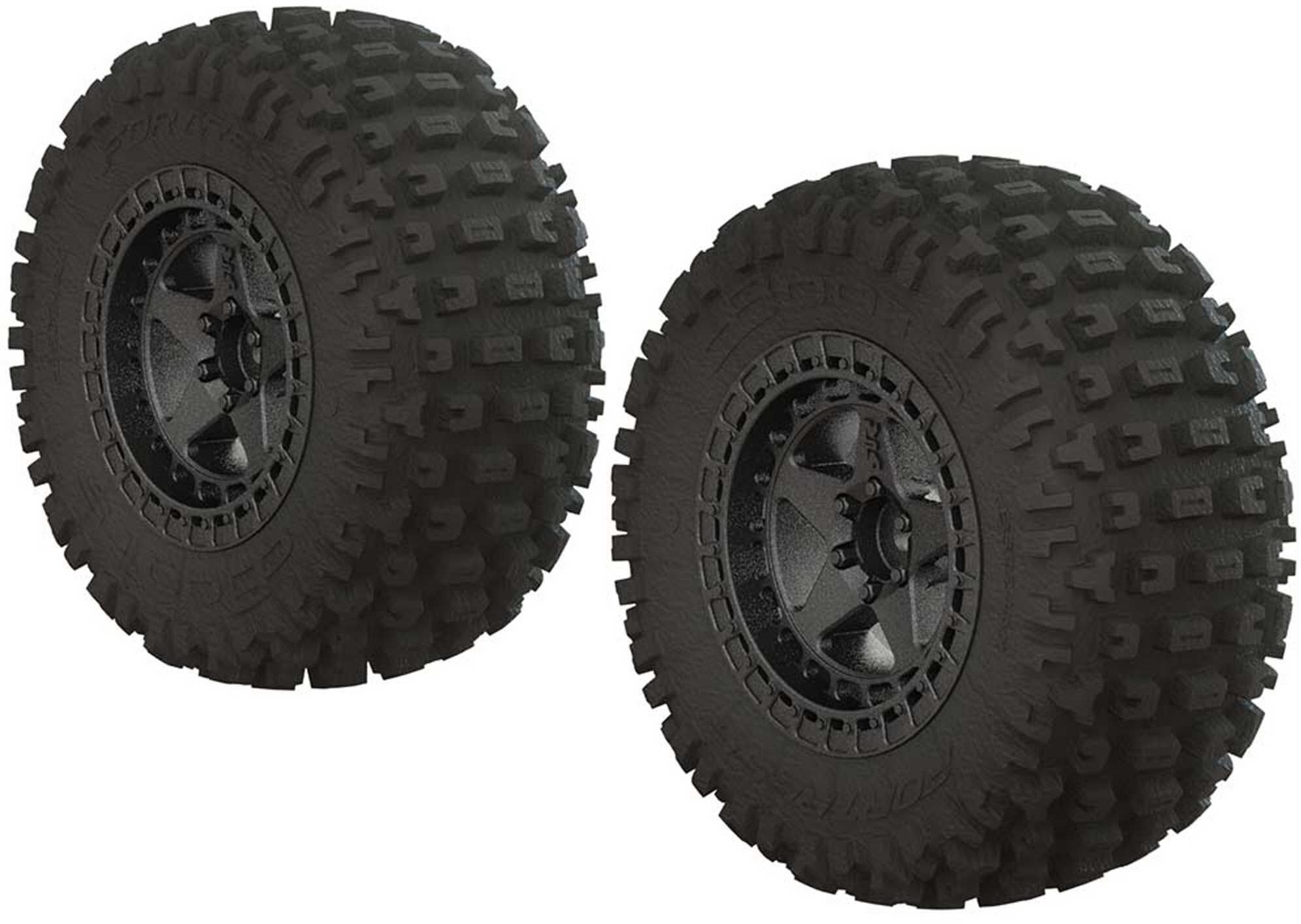 These premium dBoots FORTRESS SC tires, mounted on ARRMA wheels, are direct replacements for your package items.FeaturesTires: Multi-surface 'FORTRESS' tread pattern for incredible traction in all conditions - Premium rubber for lasting toughness - Pre-glued for trouble-free fit and fast maintenance