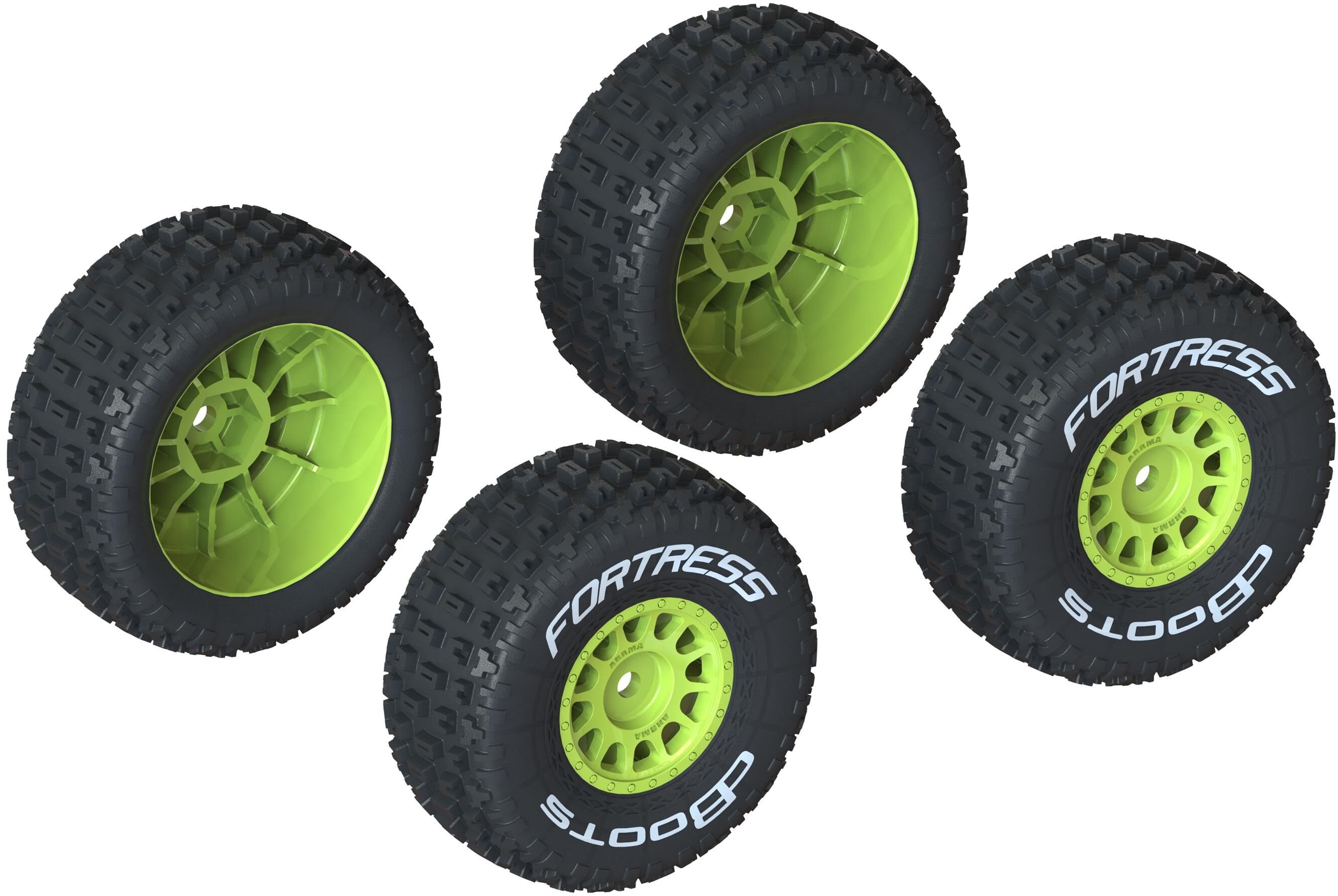 These high-quality dBoots FORTRESS tires, mounted on ARRMA wheels, are direct replacements for your kit items.