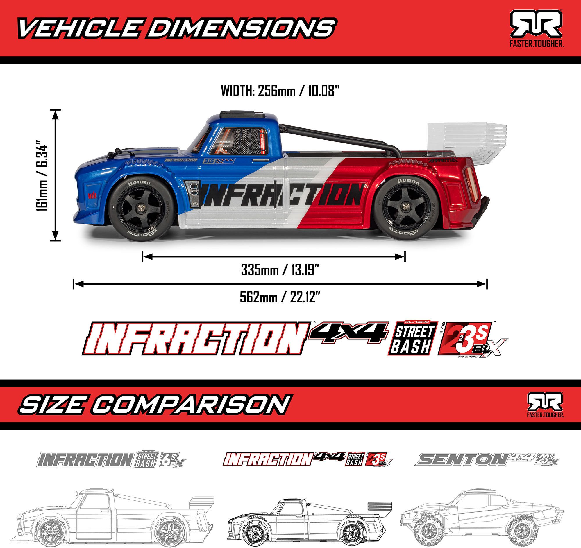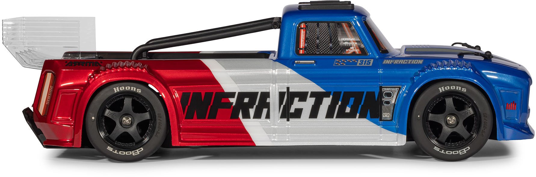 The ARRMA INFRACTION 223S BLX DSC 4X4 RTR delivers. Because the street is better at full speed.