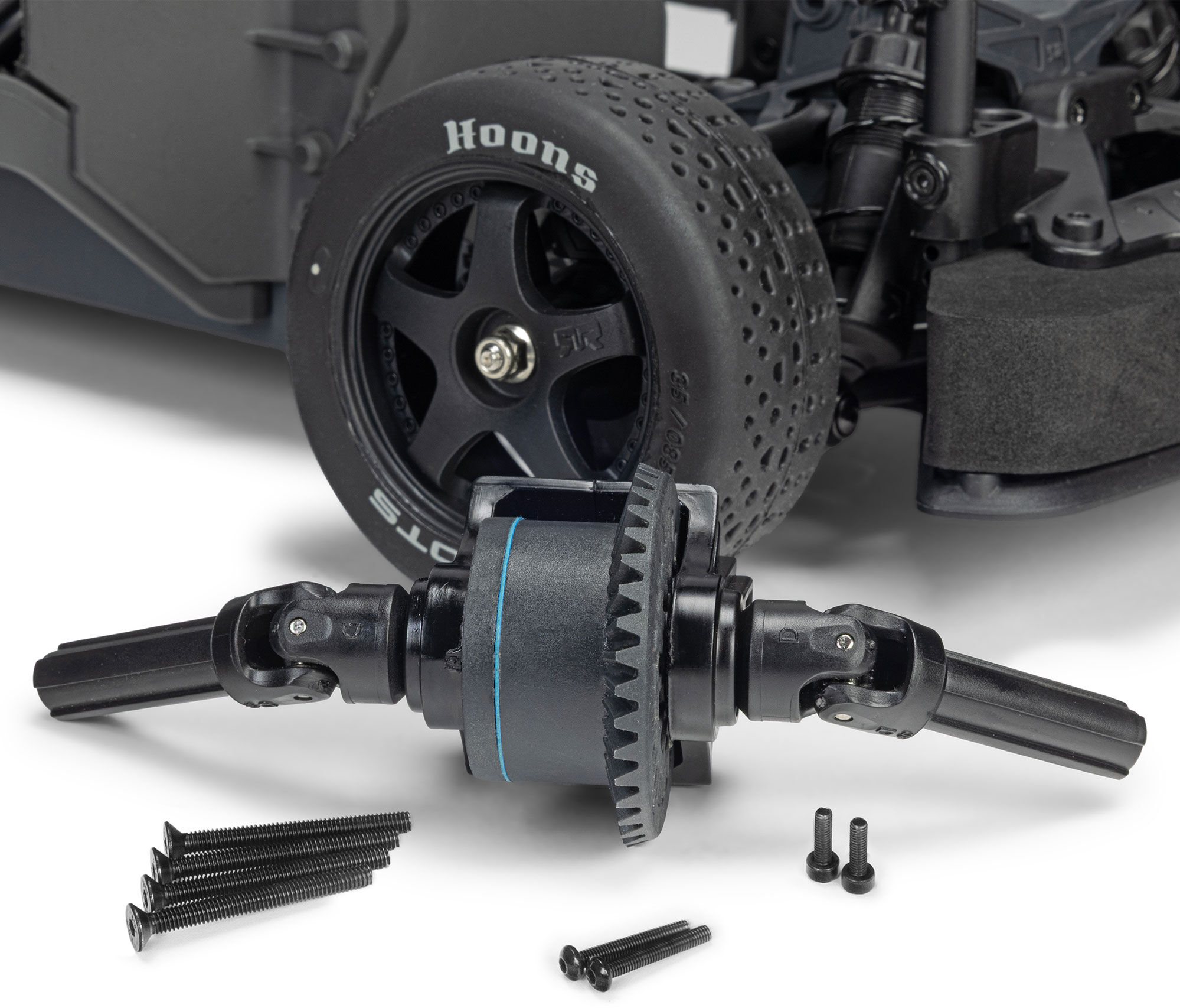 Under the aggressive Infraction body sits a re-engineered drivetrain. Metal-geared 37T 1.35 MOD differentials, steel input gears, and dual rubber-sealed bearings throughout mean this platform is built to absorb punishment run after run. The transmission overload coupling handles shock loads and protects your gears without requiring any slipper clutch tuning. All you need to do is bash and let the system take care of itself. It means you get cleaner launches on high-grip asphalt with fewer blown diffs.