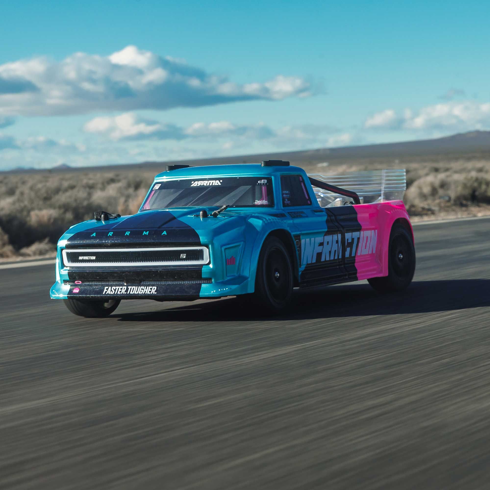 The ARRMA INFRACTION 223S BLX DSC 4X4 RTR delivers. Because the street is better at full speed.