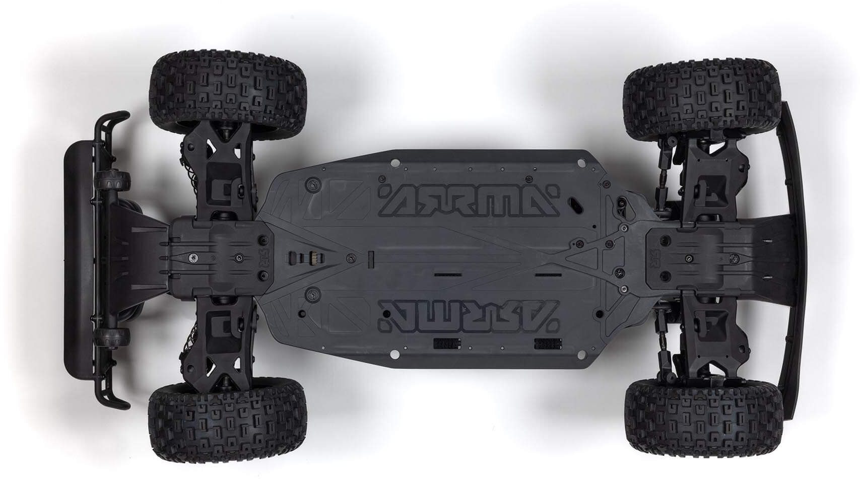 If you're a new driver, you'll be able to set the throttle limits of the included 3-channel Spektrum SLT3™ radio at 50% or 75% until you're ready to use the full speed potential. Then punch the throttle and let the dirt fly. The ARRMA MOJAVE 4S BLX 4X4 Desert Truck has multiple layers of defense against dirt and debris — including wishbone dirt guards, a chassis dirt drain, outdrive guards for enhanced protection from rocks, and most importantly, an inner body to keep internals clean.