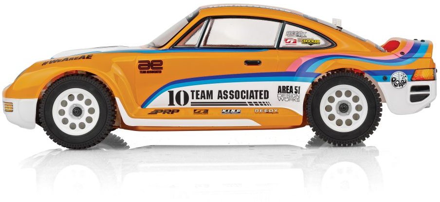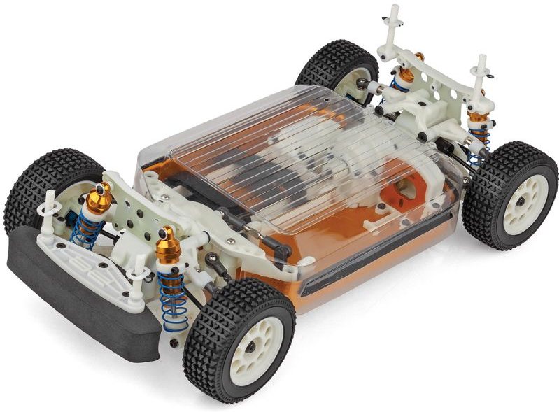 Bring the golden era of RC racing into the modern age with this rally-bred powerhouse, outfitted with an aluminum gold tub chassis plate and iconic RC10 livery decal sheet. The clear 3-piece rally body set, complete with rear bumper and wing, delivers aggressive styling and aerodynamic performance, while injection-molded brake calipers and rotors add realistic scale detail. Rally shock towers, gold anodized aluminum shocks, and a fully adjustable front