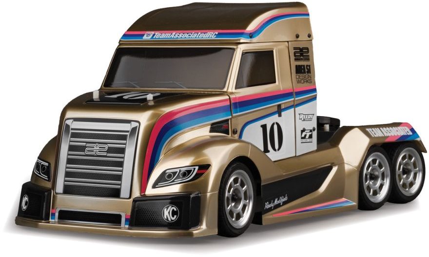 We are excited to introduce the RC10 American Custom Semitruck 6x6 Metallic Kit, a groundbreaking addition to our lineup that combines innovation with high-performance design. This comprehensive kit boasts a range of exceptional features, including durable white plastic parts, a striking new 6x6 body set, and a robust 6x6 plastic gearbox set. It also includes a 6x6 diffuser set with body accessories, a sleek metallic gold aluminum chassis plate, and high-quality FT ball end set. For enhanced control and precision, the kit features aluminum turnbuckles, metallic gold shocks, and a metallic gold motor plate. Completing the package are satin chrome wheels, adding both style and functionality. Build the ultimate 6x6 vehicle with the RC10 American Custom Semitruck 6x6 Metallic Kit!!