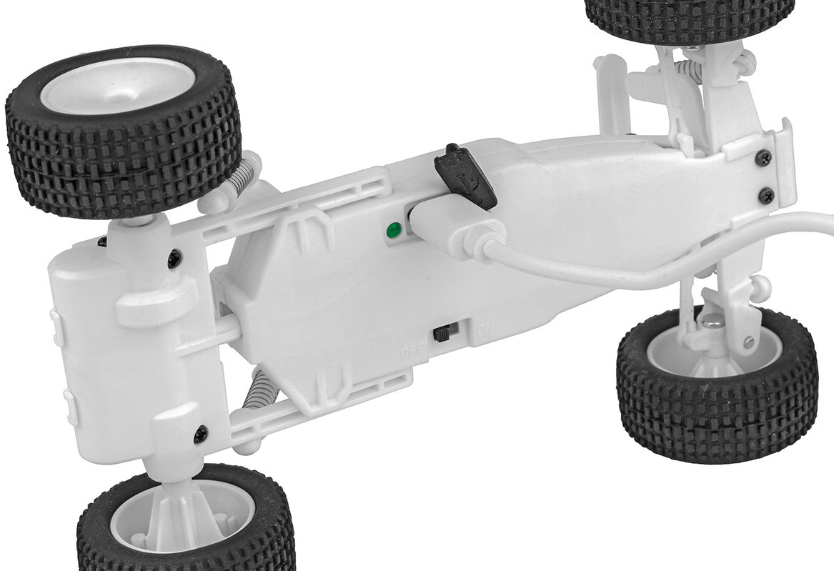 The included 2.4 GHz transmitter allows complete control enabling you to navigate around, through and over obstacles with ease! With its off-road stance and rubber tires, the RC28 ZOOM handles like no other vehicle in its category.