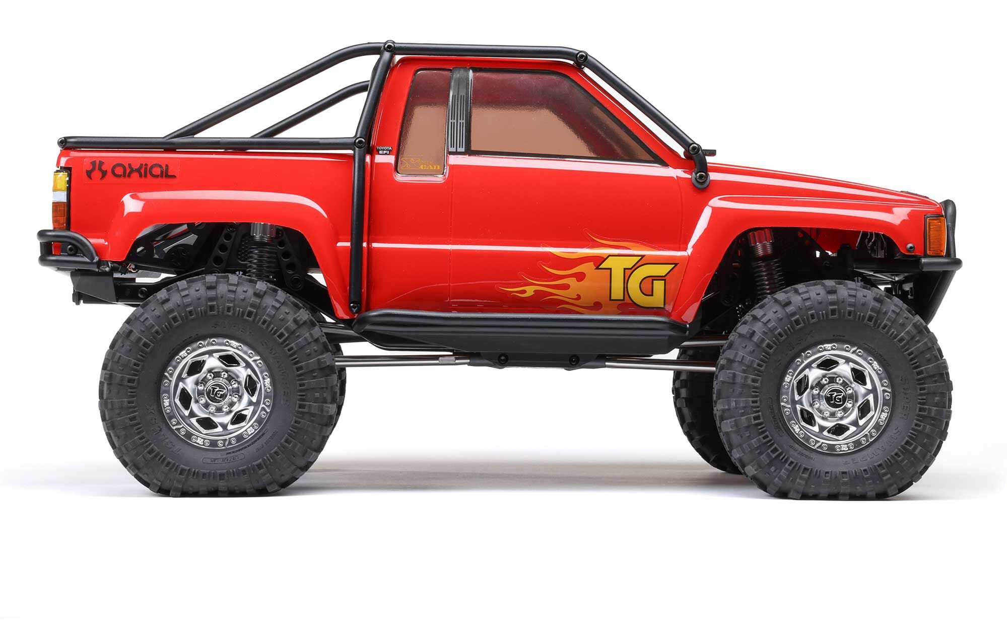 The SR5's authenticity starts with the detailed Xtra Cab body featuring scale-molded grille, headlights, taillights, and hood latches and continues down to the amazing Trail-Gear (TG) axles they not only look cool but increase performance. The AR45P portal axles feature authentic fabricated-style housings that capture Trail-Gear's designs perfectly while providing superior ground clearance and durability. Completing the authentic Trail-Gear look are the officially licensed Creeper Lock beadlock wheels wrapped in Interco Super Swamper tires.
