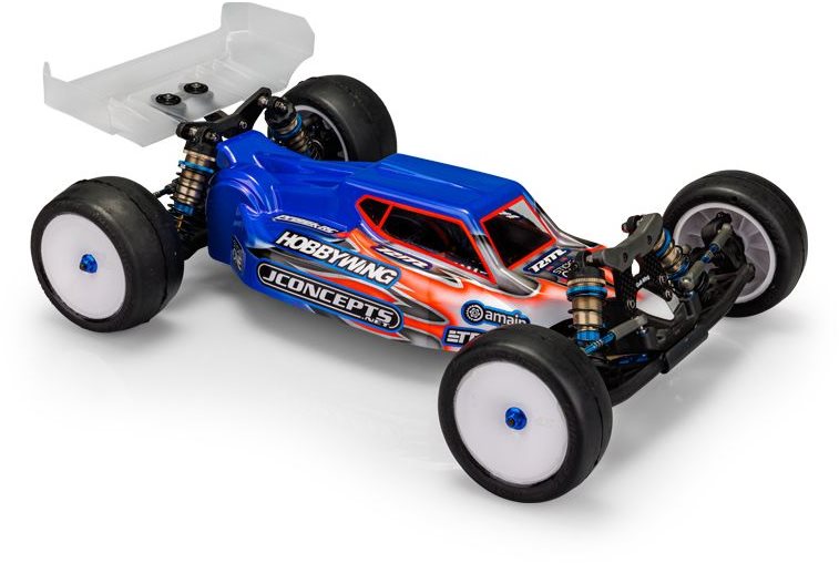 The back of the body has a climbing spoiler shape that uses the rear of the body to increase rear downforce. As always, the body arrives with window mask, decal sheet, two of the latest Carpet / Turf / Dirt wings for a quick transition from preparation to racing. The product is always backed by JConcepts customer service, supported, and developed by professionals with style and authenticity.