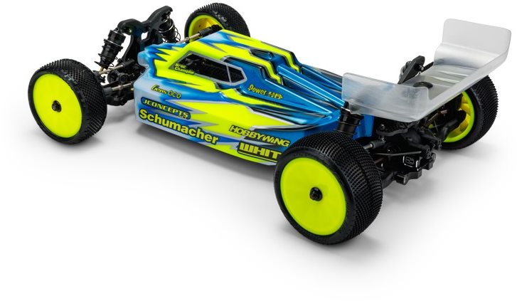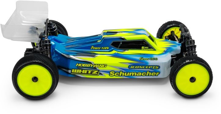 The back of the body has a climbing spoiler shape that uses the rear of the body to increase rear downforce. As always, the body arrives with window mask, decal sheet, two of the latest Carpet | Turf | Dirt wings for a quick transition from preparation to racing. The product is always backed by JConcepts customer service, supported, and developed by professionals with style and authenticity. Look for reputable dealers and distributors and demand authentic products - choose JConcepts.