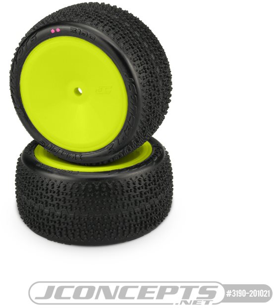 JConcepts fit, finish and designDual, connected pin with alternating positioning"River walk" of center pin supportSidewall legs with micro pinsCarefully shaped profiled carcass for rolling speedIncludes open cell inserts
