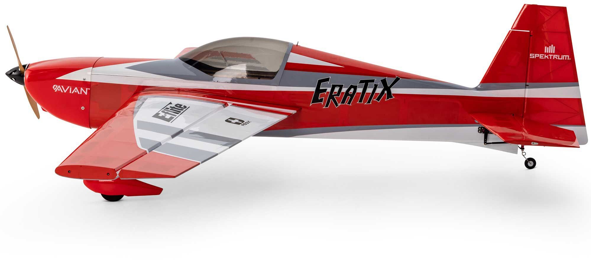 The E-flite® Eratix 3D FF (Flat Foamy) 860mm took the market by storm by being the most convenient, easiest to assemble, and fly “flat foamy” model in its class. Now the Eratix 3D SWS (Sport Wood Series) 1.6m (64") offers those same benefits along with the advantages of lightweight, stiff, and strong wood construction to deliver excellent flight performance plus convenience and value unlike similar class models. It's the first-ever wood-built and fully 3D capable model of its size available in a BNF Basic version – that assembles quickly and easily without any glue – equipped with factory-installed high voltage digital and metal-geared servos, a 6S compatible Spektrum Avian motor and Smart ESC, plus a 6-channel receiver with AS3X+ and SAFE Select technologies. It's also available in an ARF version that's ready for installation of your preferred power system and electronics.
