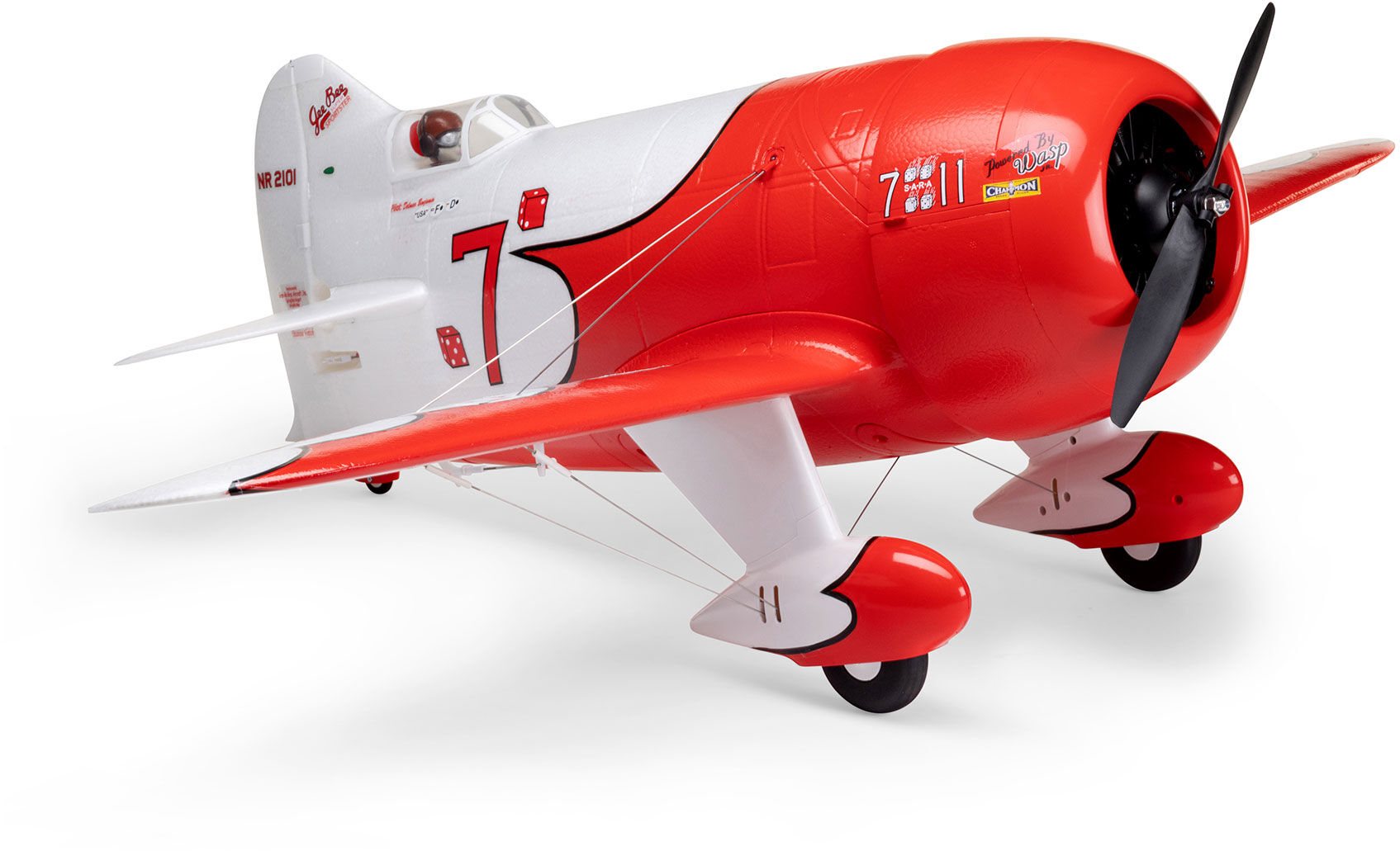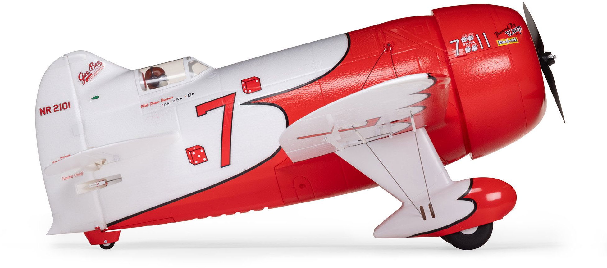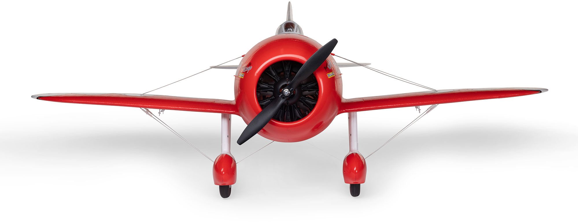 Gee Bee aircraft were among the pioneering racing airplanes that captivated just about everyone during aviation's Golden Age. Their cutting-edge, teardrop-shaped designs, coupled with small wings, required a skillful hand to fly well, but with the right pilot, they dominated the racecourse. The E-flite® Gee Bee R-2 1.0m is a faithful replica of the iconic aircraft, featuring an abundance of scale detail along with modern features and technologies to deliver an unmatched flying experience. It assembles quickly and is sized to be easily stored and transported without disassembly. The Bind-N-Fly® Basic version is equipped with enhanced AS3X+® technology that smooths out the effects of wind and turbulence like never before, plus optional-use SAFE® Select technology that makes it easier to fly. Both versions include Spektrum digital, metal-geared servos, a 70A Smart Lite ESC, and a 4S-compatible motor.