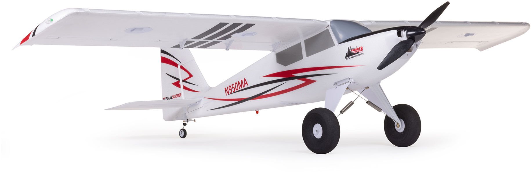 The E-flite Timber 1.5m 10th Anniversary Special Edition celebrates the release of one of the most popular and best-selling RC aircraft of all time! All the popular features from the original Timber 1.5m are there: shock-absorbing landing gear with oversized, tundra-style wheels; an optional-use float set and leading edge slats; functional slotted flaps; and an LED lighting system with landing, navigation, and strobe lights. So are the enhancements that gave the Turbo Timber 1.5m more performance and capabilities, including a more powerful 3S and 4S 2200–5000mAh compatible power system, and a stiffer wing. Now this Special Edition adds a top-mounted hatch for faster, easier battery changes, plus combined connectors for simpler wing installation and removal. Strengthened landing gear mounts, along with heavier-duty springs, improve the model's durability and STOL capability when flying from rough terrain. Plus, it also features the iconic short-nose and trim scheme design for a now “classic” look!