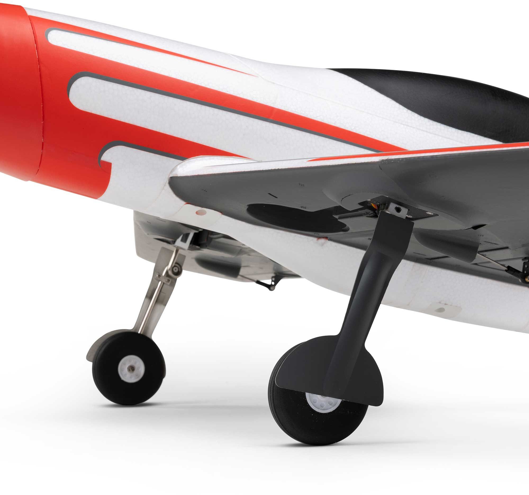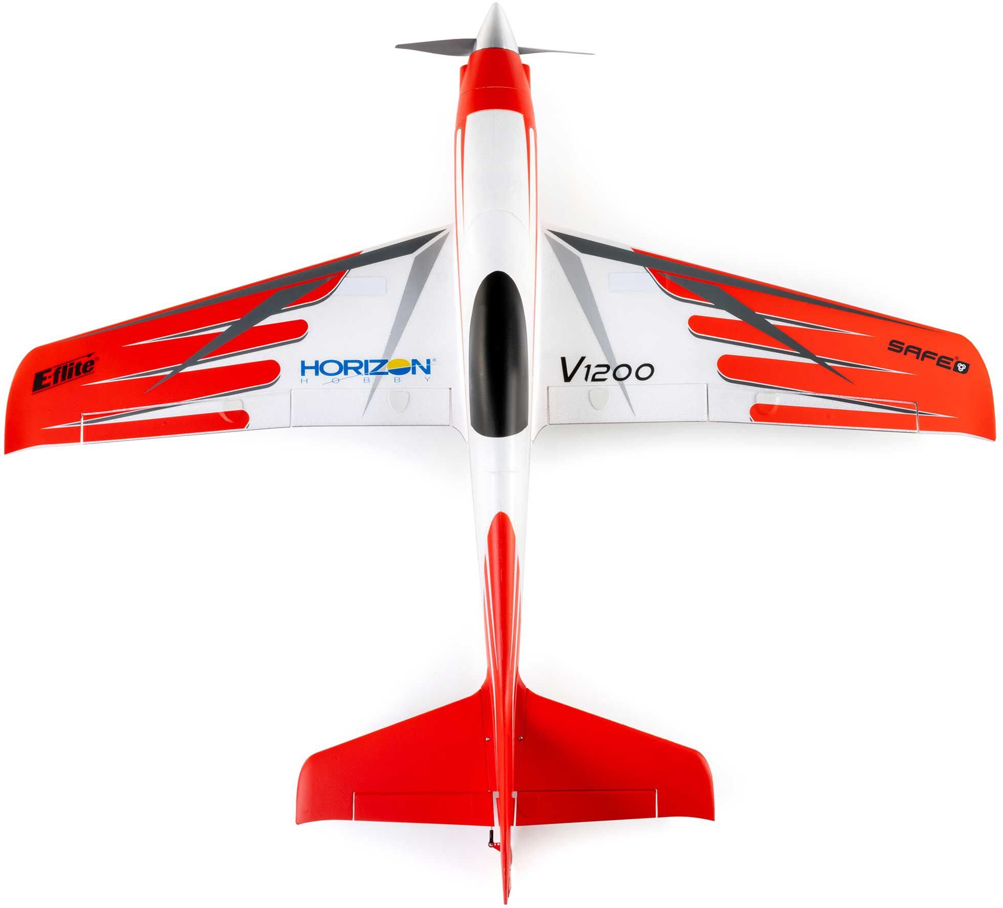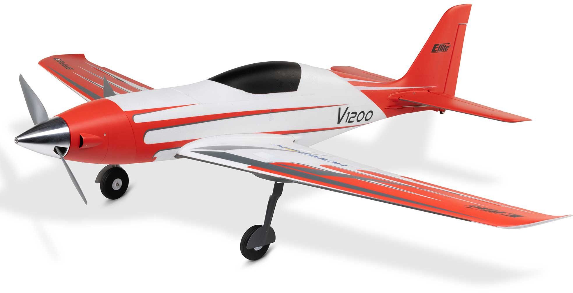 Fly fast and look good doing it with the E-flite V1200! The original V1200 quickly became known as one of the fastest right-out-of-the-box models – also capable of unexpectedly stable slow flight for easier landings thanks to its functional flaps – with impressive aerobatic capabilities. Now it's available again with larger, more durable and reliable retract units, a higher visibility color scheme and improved finish, plus the proven high-performance brushless power system that lets you choose how ballistic you want to be. Level-flight top speeds of up to 110+ MPH are possible with 4S batteries. Or reach up to 140+ MPH using common 6S 3200–7000mAh packs! It's equipped with a 100-amp Spektrum Avian Smart ESC, plus the BNF Basic version also features an AR637TA+ receiver to deliver full-range real-time telemetry along with the benefits of enhanced AS3X+ and optional-use SAFE Select technologies.