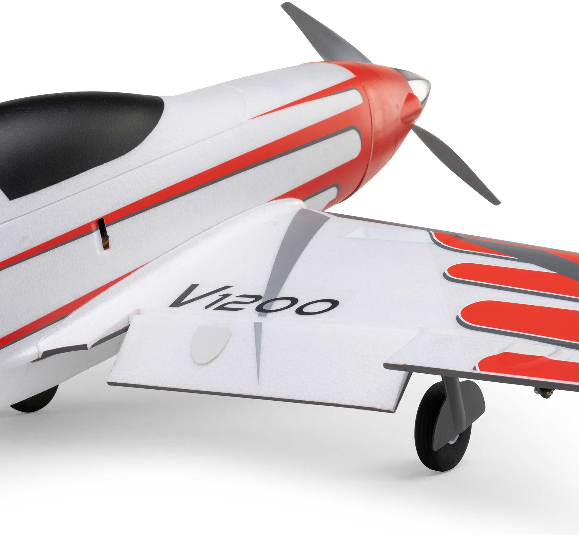 Speed and aerobatic enthusiasts will love the locked-in precision of the six digital, metal-geared servos and ball-link equipped linkages – especially when flying the BNF Basic version that's equipped with a factory-installed AR637TA+ receiver featuring enhanced AS3X+ and optional-use SAFE Select technologies. Operational flaps improve slow-flight performance and allow for shorter takeoffs and landings. The updated and upgraded, more durable and reliable retracts with sprung wire struts let you fly from paved, packed dirt, or shorter grass surfaces at any suitably sized fields. The sleek airframe is composite-reinforced throughout and is molded in higher-density EPO that delivers a stronger and stiffer airframe with a smoother, dent and damage-resistant surface. Plus, it's now factory-finished in a high-contrast trim scheme with a brighter color for improved visibility and orientation. No glue is required for assembly, and a total of six screws install the stabs, plus the one-piece wing that installs and removes easily for convenient storage and transport, thanks to hands-free connections. That means you can be ready to enjoy a flying experience unlike any other in less time than it takes to charge a battery. It's easier than ever to fly fast and look good doing it with the V1200!