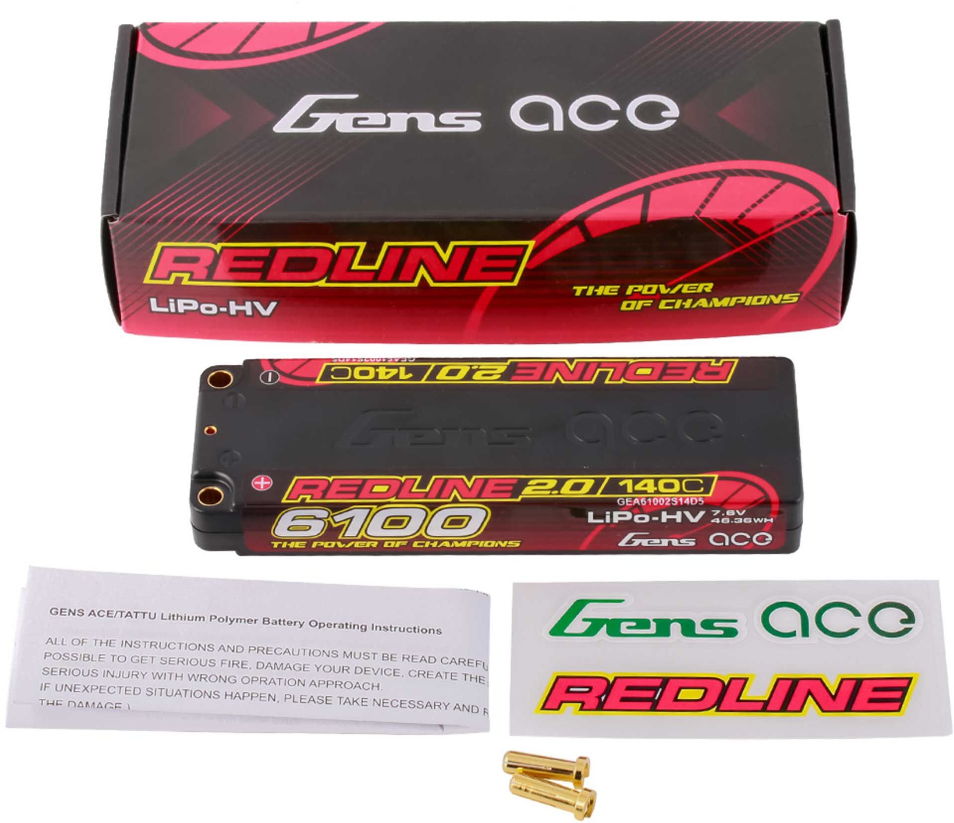 - Gens Ace 7.6V 6100mAh 2S 140C LCG LiHV 5.0mm bullet