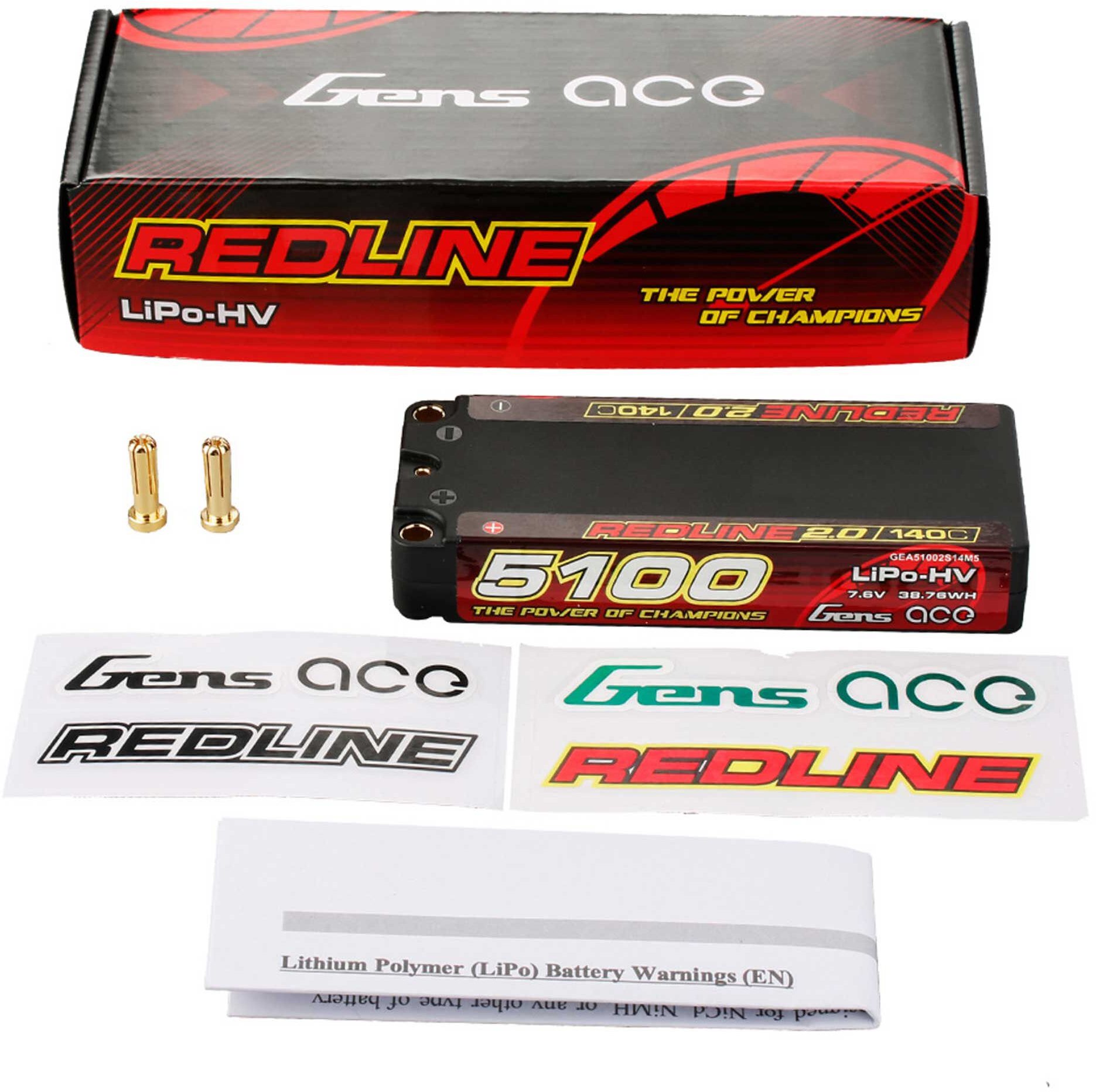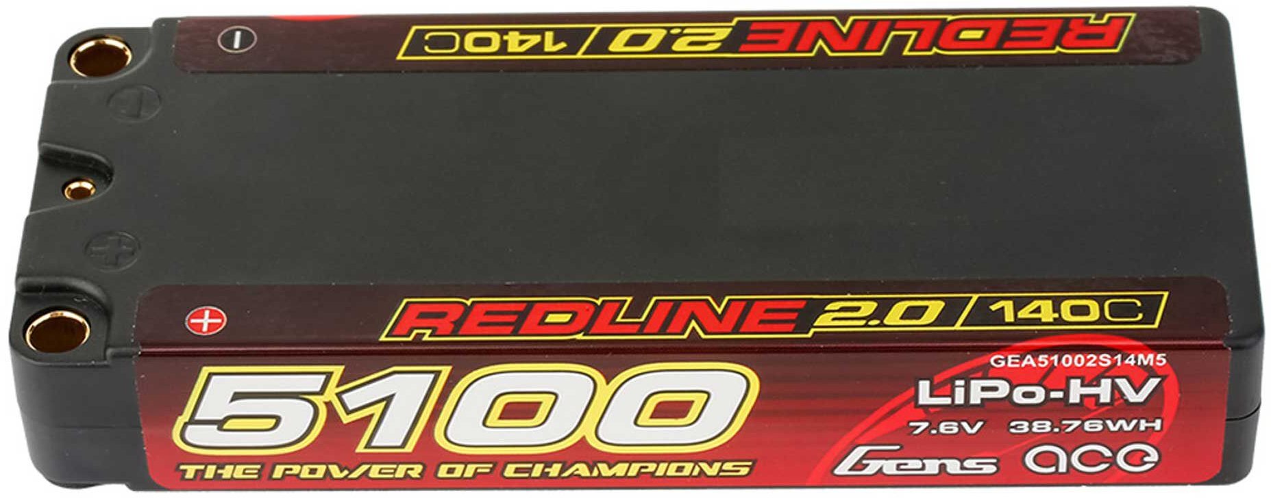 - Gens Ace Gens ace Redline 2.0 5100mAh 2S 140C 7.6V HV Middle hardcase Lip