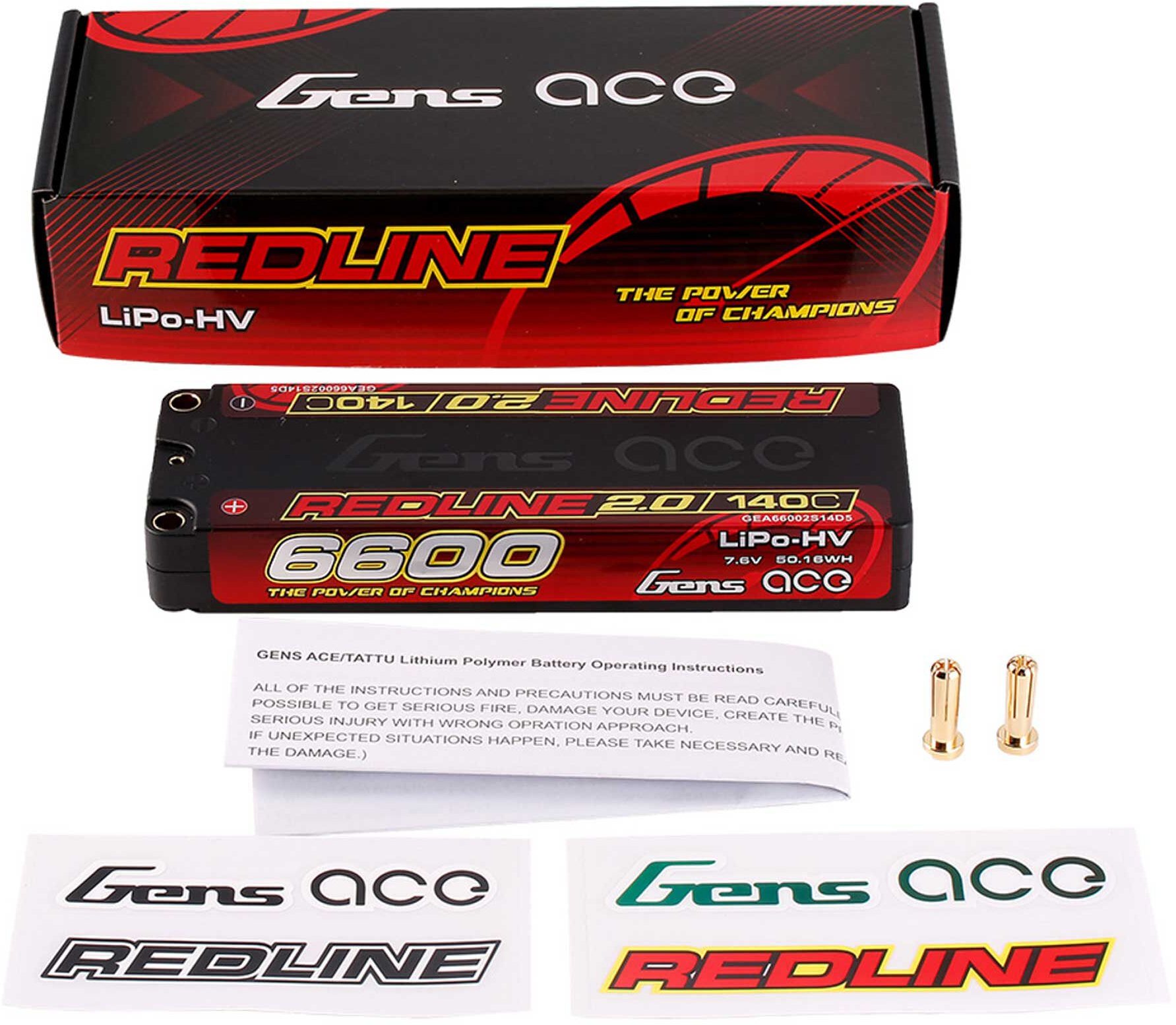- Gens Ace Gens ace Redline 2.0 6600mAh 2S 140C 7.6V HV hardcase Lipo Batte