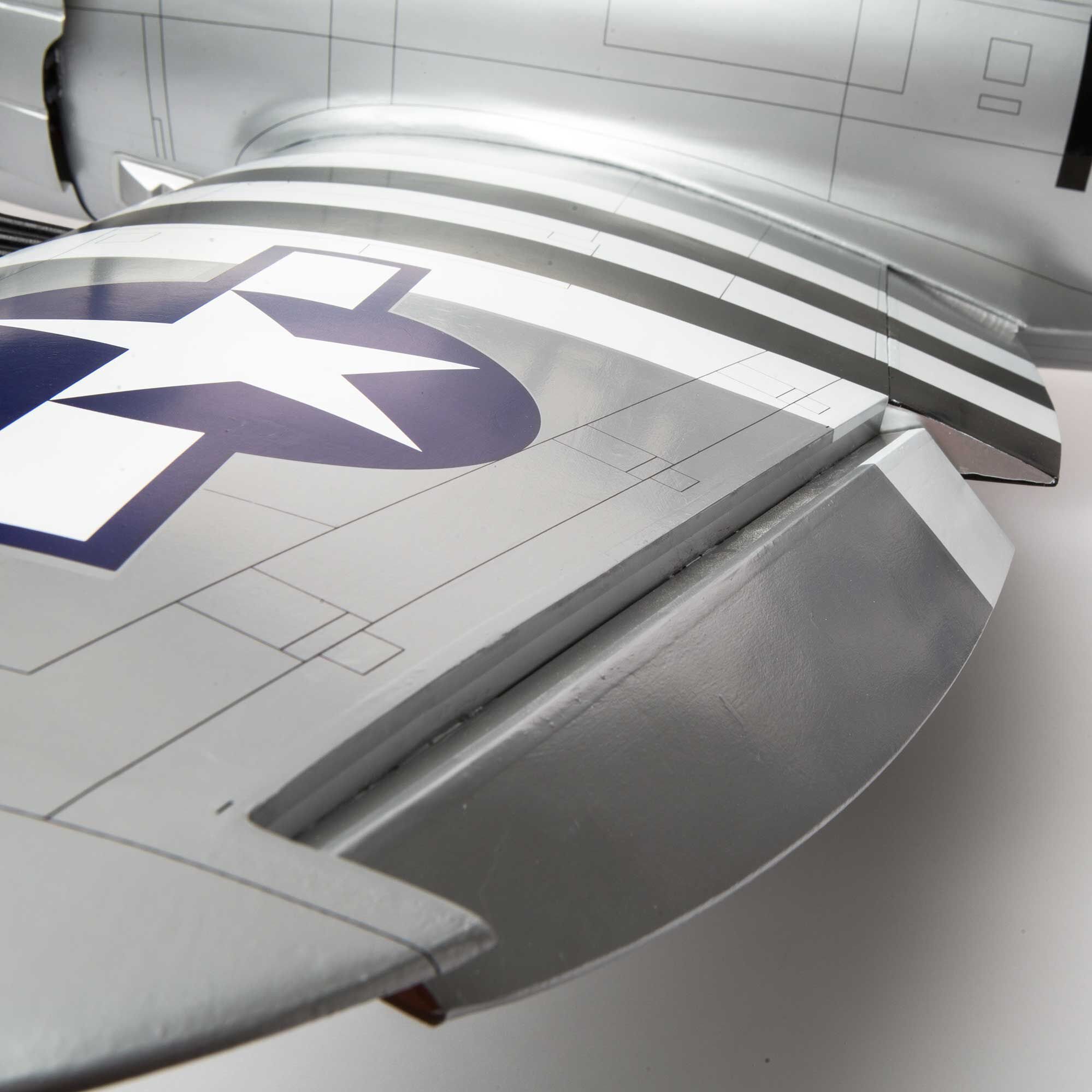 The Hangar 9® brand is no stranger to making a great flying 20cc-class P-47D Thunderbolt model. Designed to accept engine or electric power systems, lightweight, laser-cut construction combined with expert craftsmanship to bring a durable airframe with incredible realism and great performance. Highlighting its outstanding appearance is a rich film covering with incredible detail and satin finish. Stunning only comes close to describe how the intricate panel lines and soft color transitions take this iconic warbird to deeper level of authenticity. Multiple nose-art decal options included let you personalize the model. Operational flaps make the flight envelope as wide as possible and add that definitive touch of realism ideal for smooth takeoffs and landings. With the throttle full-forward, this P-47D proves its heritage with maneuverability that’s rock-solid, speed that>s heart-pounding and a feel at the controls that will have you wanting more.