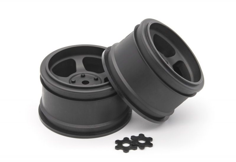 Classic Trans Am inspired TA2 Wheels in Black heavy-duty Nylon.These extremely cool wheels will fit 31mm tires like HPI #4797, #4791 or #102994 Vintage Racing Tires, and look simply great when combined with the any Vintage bodyshell!