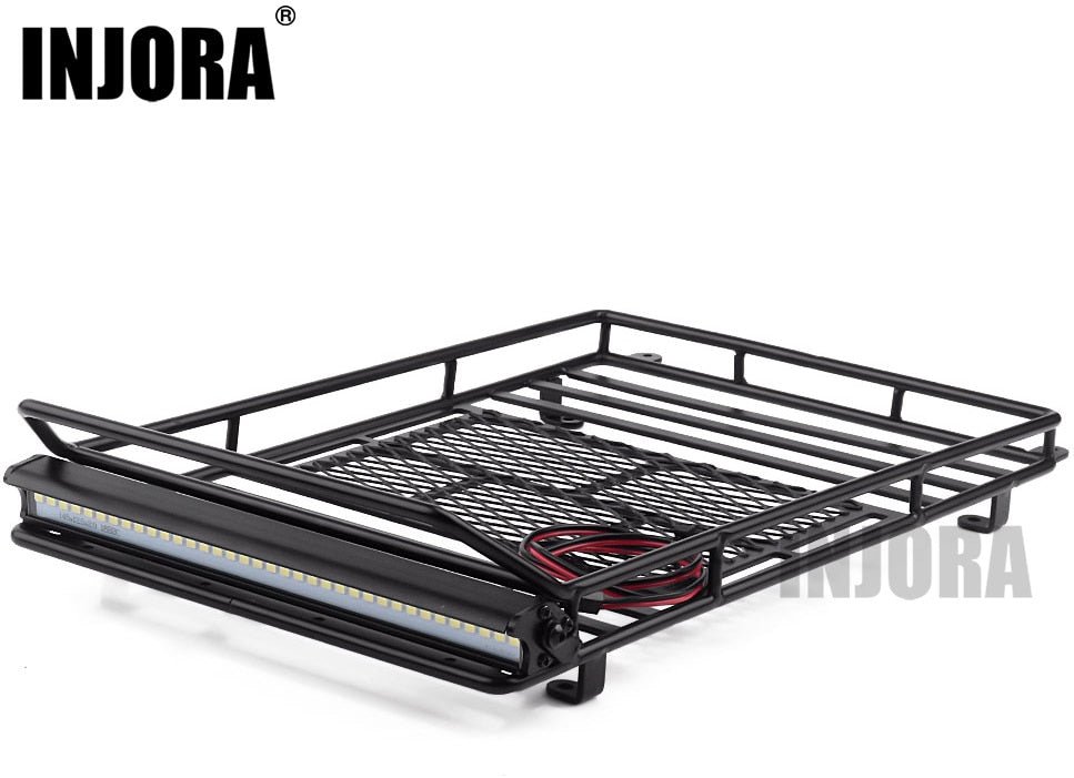 - Injora 245*150mm Luggage Carrier Roof Rack with LED Light Bar for 1/10