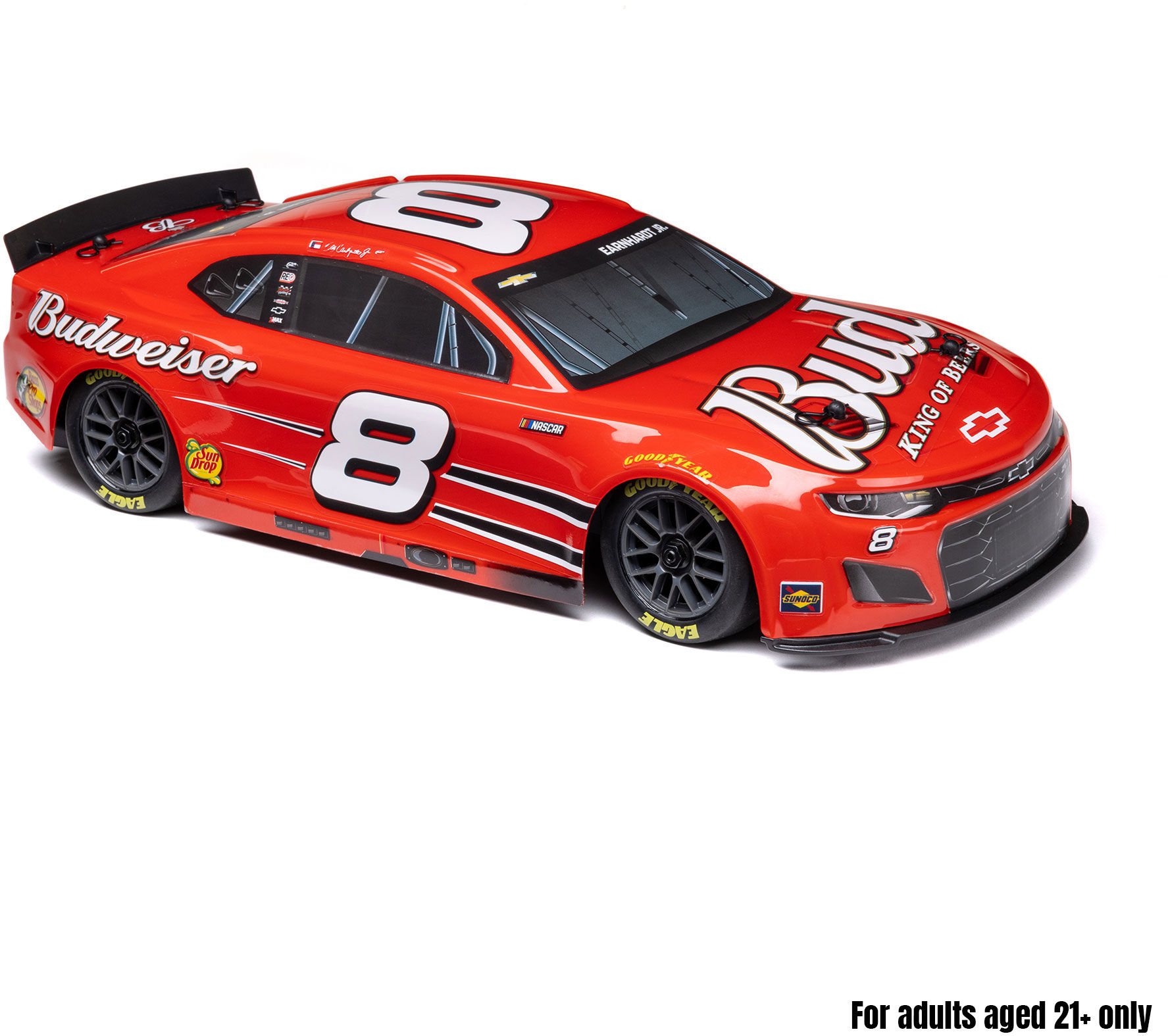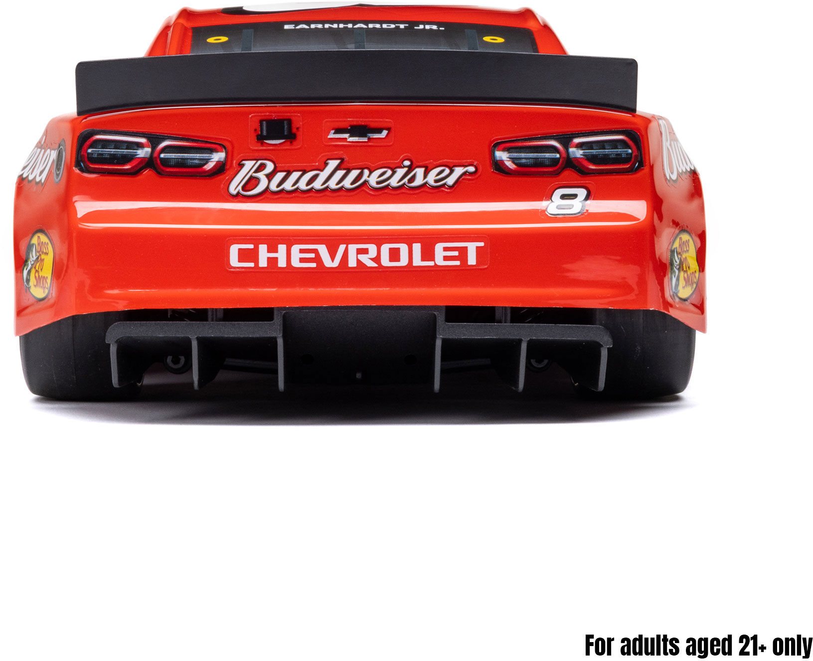 The speedway crowd roars as you slingshot past competitors and muscle your car into the lead. Confidence rumbles through you like 8-cylinders of high-octane horsepower. This is NASCAR. The 1/12 Scale Losi® NASCAR® 2025 Fantasy Dale Earnhardt Jr. No. 8 Budweiser RC Racecar is the ultimate dream race machine. Fulfill the fantasy of having Dale Earnhardt Jr. driving his iconic NASCAR No. 8 Budweiser trim scheme on a modern-day Cup car.