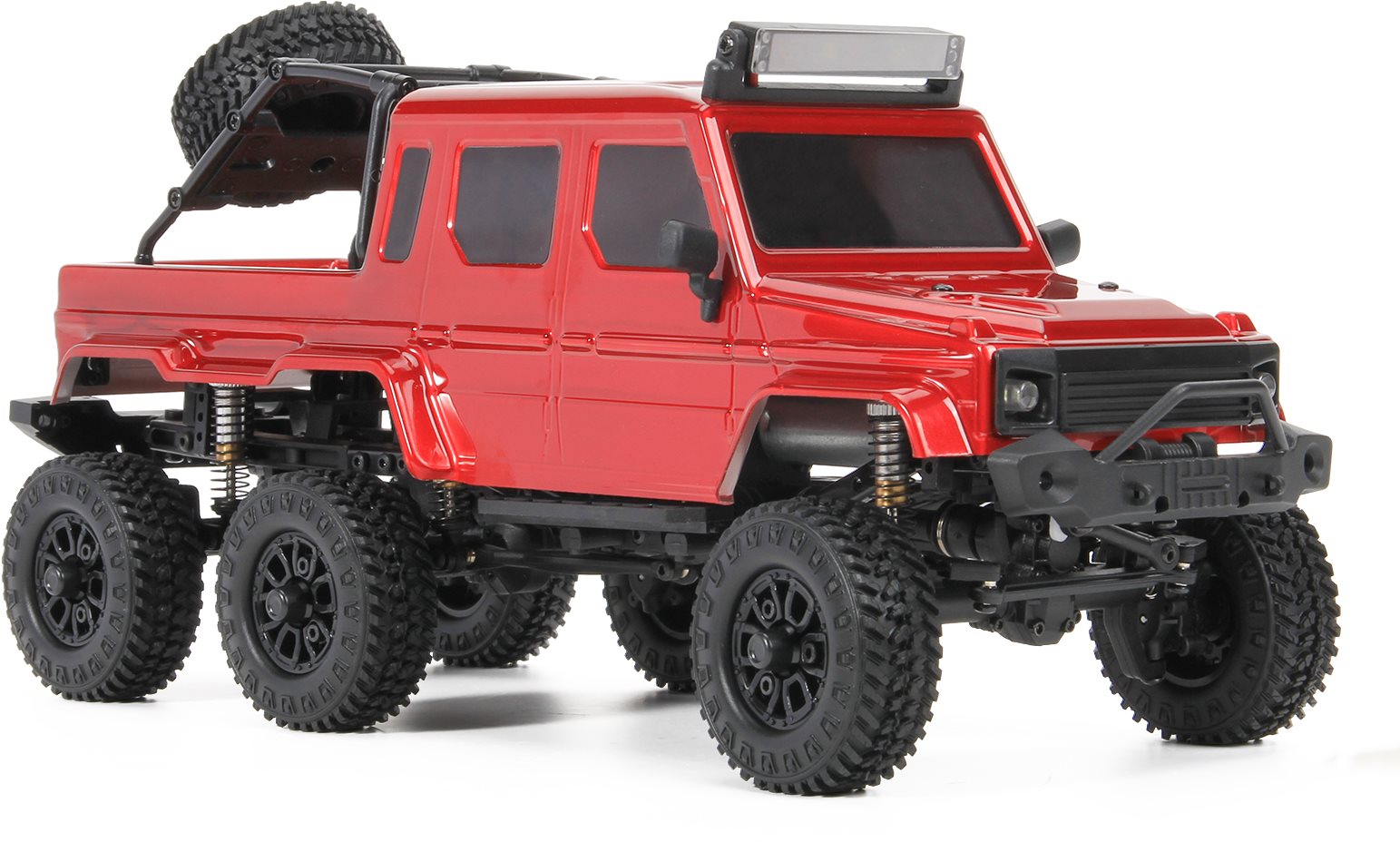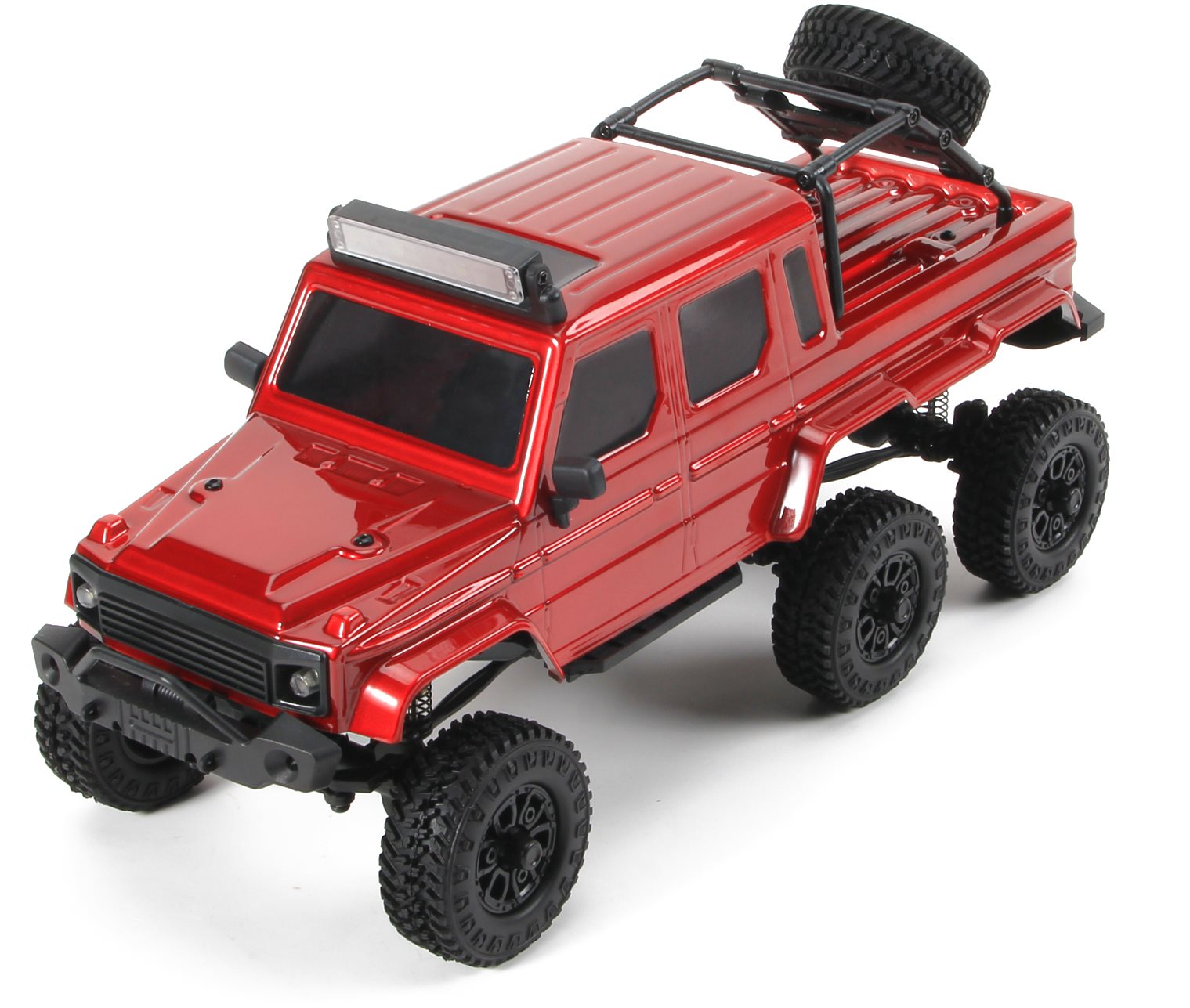 - Class leading scale body detail: Front Bumper, 2 LED Front Light Buckets, 2 LED Rear Light Buckets, 2 LED in Roof Mounted Light Bar, Injection Molded Mirrors, Injection Molded Grill, Spare Tire Carrier with full-size spare