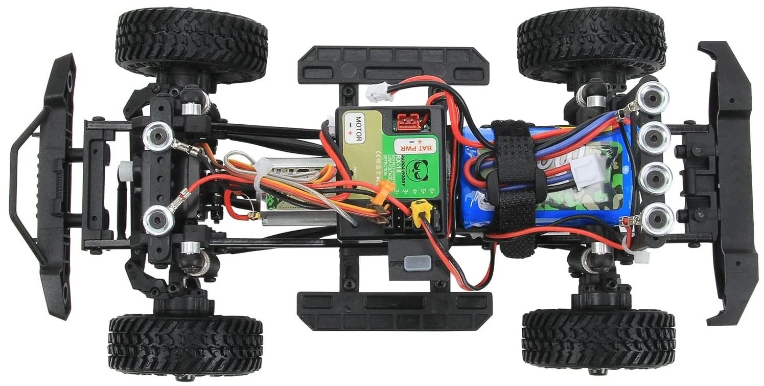 - Solid front and rear axle with worm gears - provides the utmost traction for tackling the harshest of obstacles.