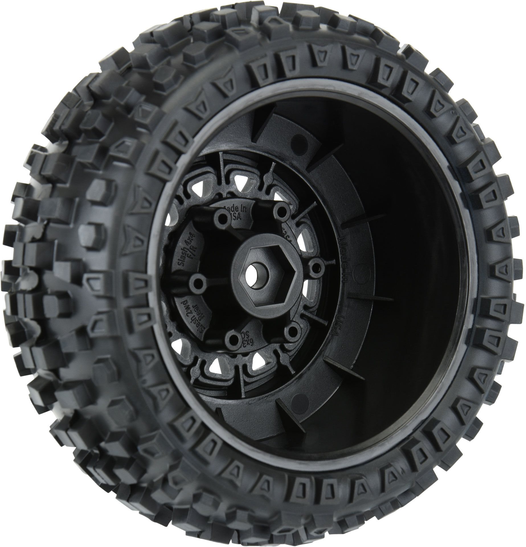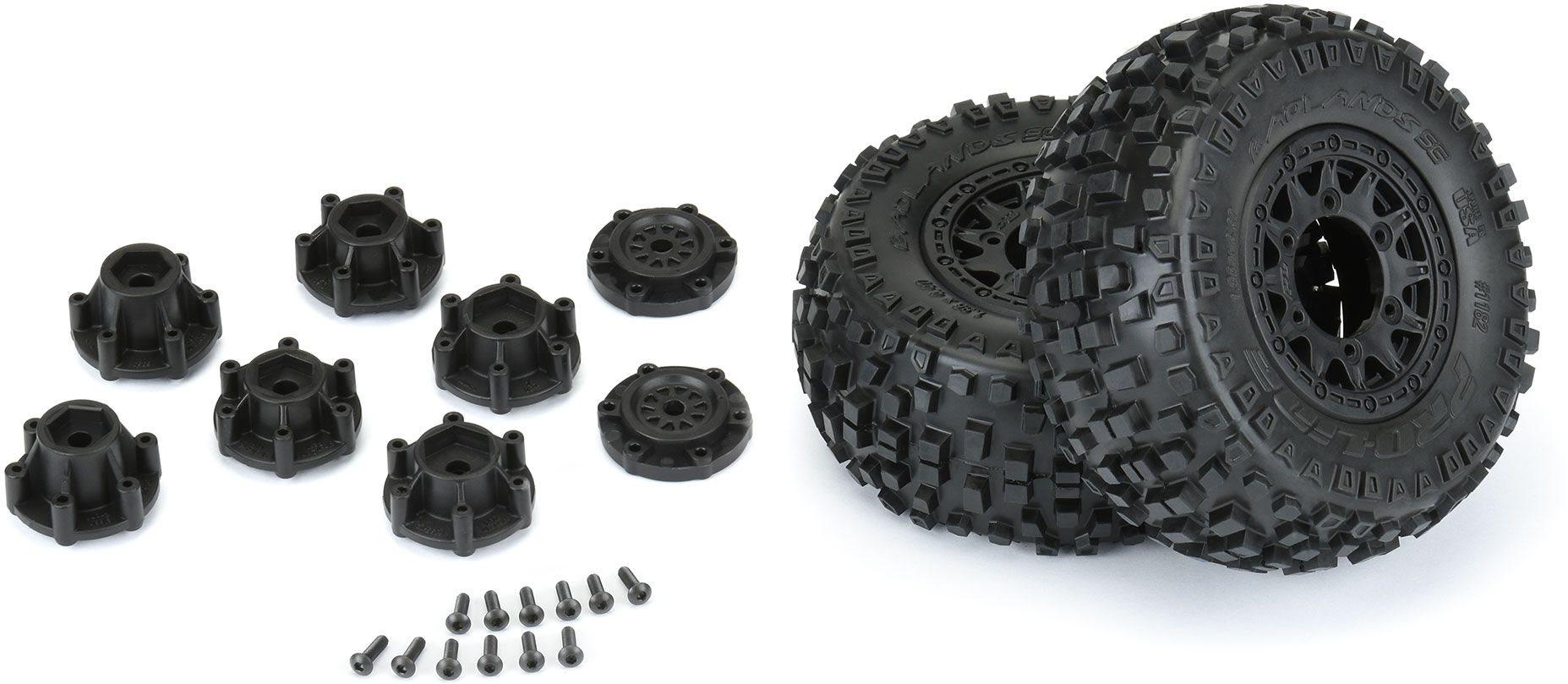 This is a set of pre-mounted Badlands All-Terrain Short Course Tires. Are you all set to chew up the dirt and spit it out in a big spray behind your SC truck? If so, then the Badlands SC tire is precisely the tire that you have been waiting for. The Badlands SC tire uses motocross style tread with substantial, lasting lugs giving it the looks and performance that have won over bashers all around the world. The Badlands tread design is made for the die-hard motocrosser in you. Its extra-large yard and dirt shredding lugs use you the ultimate in performance under all-terrain type conditions. The lugs are created to make sure longevity while spitting up the surface area below. Made from soft yet durable M2 substance, the Badlands tire is poised for battle and all set to take your Brief Course Truck to the next level of slamming heaven.The Badlands SC tires are installed to a set of Raid SC Removable Hex Wheels. We take the uncertainty out of your glue task by doing the installing for you so you can invest your time having fun! Pro-Line is happy to present a true next-generation Brief Course wheel design - the Raid 2.2"/3.0" Removable Hex Wheel for all Brief Course Tires! Envision being able to easily alter the balanced out of your wheel to fit different applications by merely changing out the hex! Now you can with the 6x30 Removable Hex system from Pro-Line. The wheels include a set of 12mm Slash 4x4 Front/Back (Slash 2wd Rear) hexes and a set of 12mm Slash 2wd Front hexes that fit the most popular trucks. Optional 14mm, 17mm and ProTrac balanced out 12mm hexes (6355-00) are available individually to fit your specific application. If your wheel hex ever gets harmed, it can easily be changed without requiring to replace your glued tires (6354-00 Replacement Slash Hexes)! These Raid SC wheels achieve all of this and more by utilizing Pro-Line's special 6x30 interlocking hex design that is secured to the wheel by 6 M3 screws that are spaced 30mm throughout. The integrated adjustability and ease of usage make this an essential wheel for Brief Course Trucks everywhere!Tire Characteristics:Readers' Choice Award-Winning Tread DesignSuper-aggressive StylingMotocross Style Tread for Durability and Superior TractionLatest Generation V2 SC Wide Carcass for Increased Contact PatchSoft, re-usable and water-proof Closed Cell Foam Inserts IncludedMade from M2 (Medium) substanceMade in the U.S.A., given that 1982 - Read about Pro-Line Racing's HistoryWheel Features:Removable Hexes Allow You to Change Wheel Balances Out on the FlyQuickly Replace Damaged Hexes or Upgrade to 14mm, 17mm and 12mm ProTrac Offset HexesThe 2 Most Common 12mm Offset Hexes are Included!Fits any of Pro-Line's 6x30 Removable Wheel Hexes for Lots Of Customized Offset OptionsWheel Made from High-strength, Resilient DuPont Nylon MaterialRaid 10-spoke Wheel Design Imitates Full-size Racing WheelsM3 Wheel Hex Hardware Included