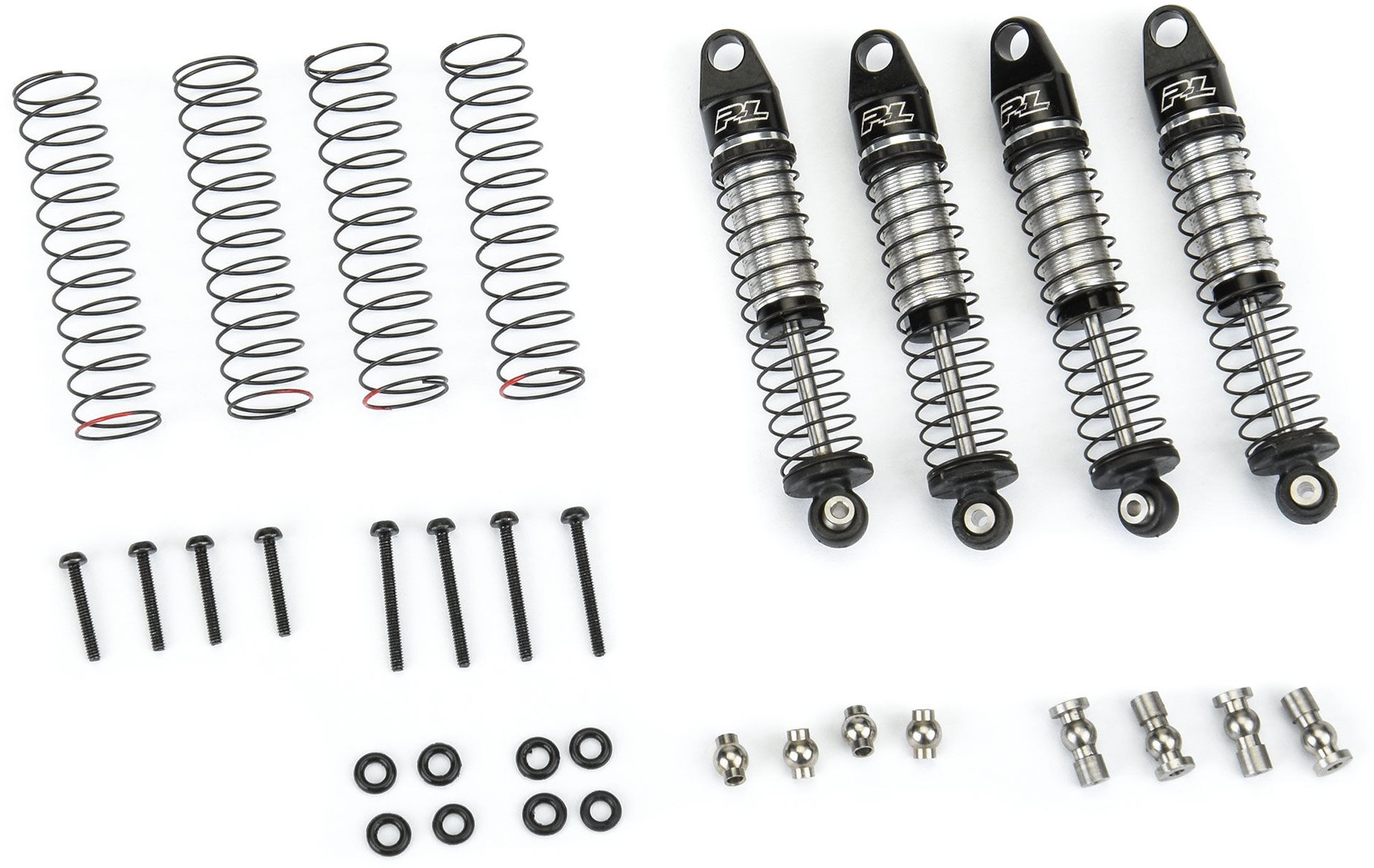 Two sets of springs are consisted of in the Huge Bore Scaler Shock set. The shocks come pre-assembled with a standard spring rate best for those stock or close-to-stock rigs. The optional stiffer springs (marked with red paint) are perfect for rigs with heavier bodies or simply to tune to your specific conditions. It consists of all hardware required to install up to either your AX24™ or SCX24™. Don't lose out on the coolest looking and finest carrying out tiny shocks in the world, Get your own Pro-Line Huge Bore Scaler Shocks today!
