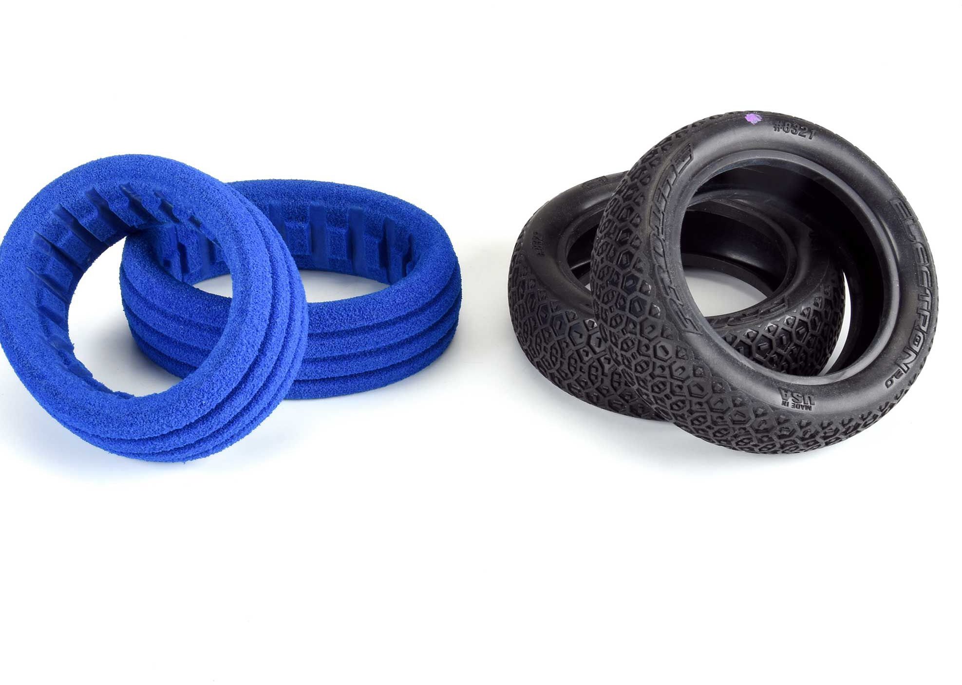 This is a pair of Electron 2.0 Tires and Closed Cell Foams. The Electron is back with a completely updated design to give our racers a competitive edge on today's high-bite blue groove tracks. Connected tire tread technology improves traction and wear on even the most abrasive of track conditions. The square center pins between the connected tread provide consistent forward and side bite even when the track gets dusty.