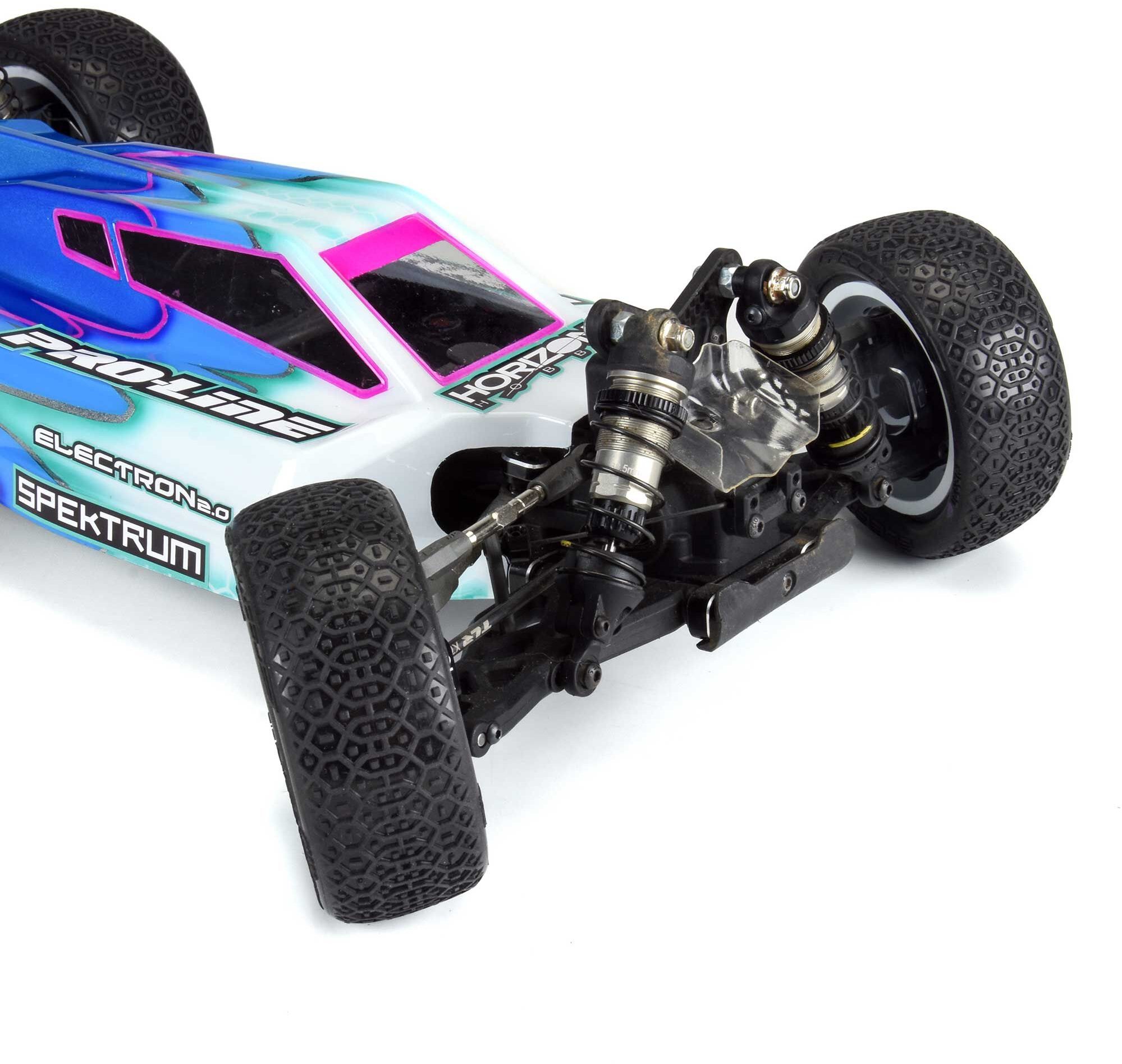 The Electron 2.0 is constructed on Pro-Line's latest generation carcass profile that utilizes a single arc to create the sidewall geometry, then transitions from the sidewall to the crown with a larger radius resulting in a rounder and less edgy appearance. This carcass provides a tailored fit to the wheel and insert package, making mounting a breeze. Racers can expect the Electron 2.0 tires to deliver improved consistency, drivability, and durability.