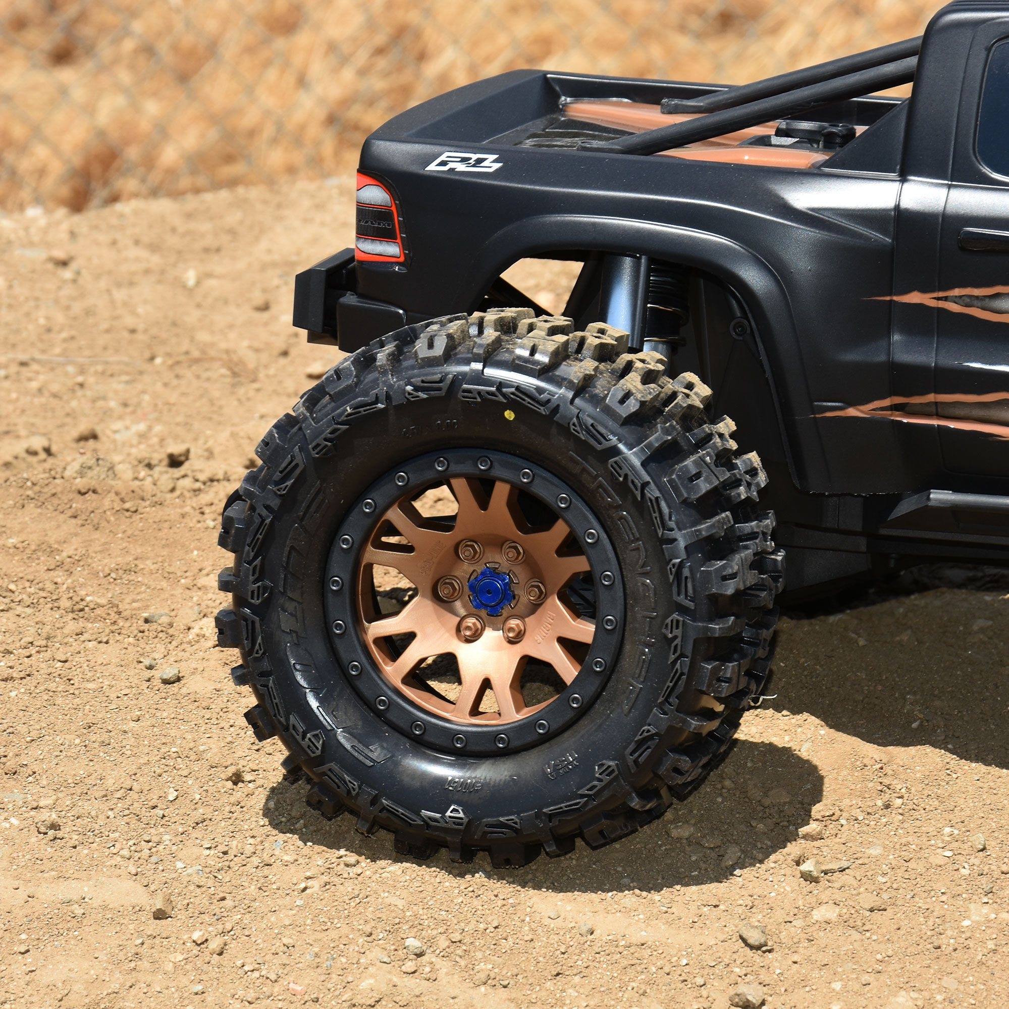 Pro-Line has the ultimate Wheel solution for X-MAXX® owners with the Limited Edition Impulse Pro-Loc Wheels! The Impulse features a groundbreaking Bead-Loc design that allows users to change tires or foams, when necessary, without worrying about the tires coming out of the bead. Pro-Line's proprietary Pro-Loc Technology brings this feature to life and creates an ultra-secure bond between Pro-Line's Pro-Loc Tires and Pro-Line's Impulse Pro-Loc Wheels. The reinforced Tire bead of Pro-Line's Pro-Loc Tires fit into a uniquely shaped channel on the wheel and the bead-loc screws pass through the tire rubber before being pinched by the outer bead-loc ring to create the maximum possible mounting security. The Impulse design is inspired by full-size off-road wheels with a Tough, Blacked-out look and is manufactured at Pro-Line Headquarters in the USA out of extra thick, extremely durable material designed to take some serious abuse.