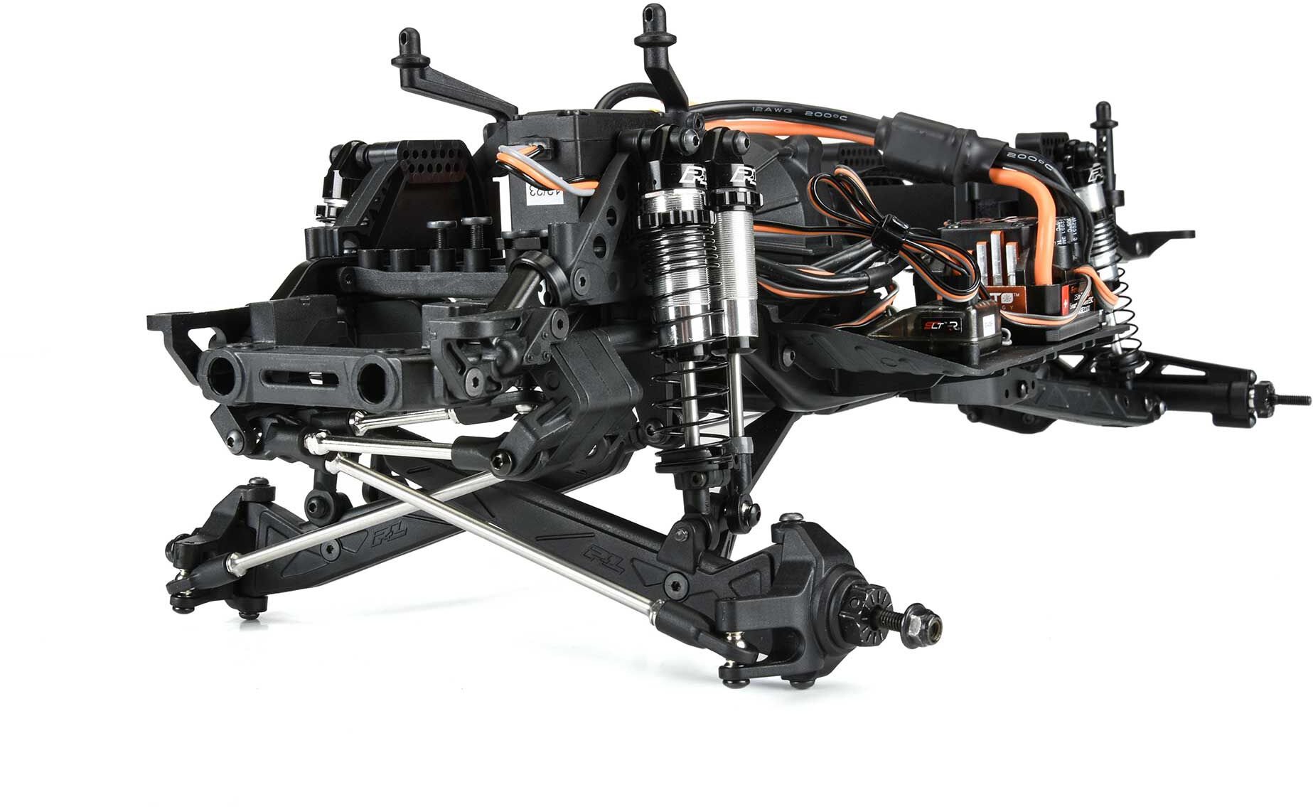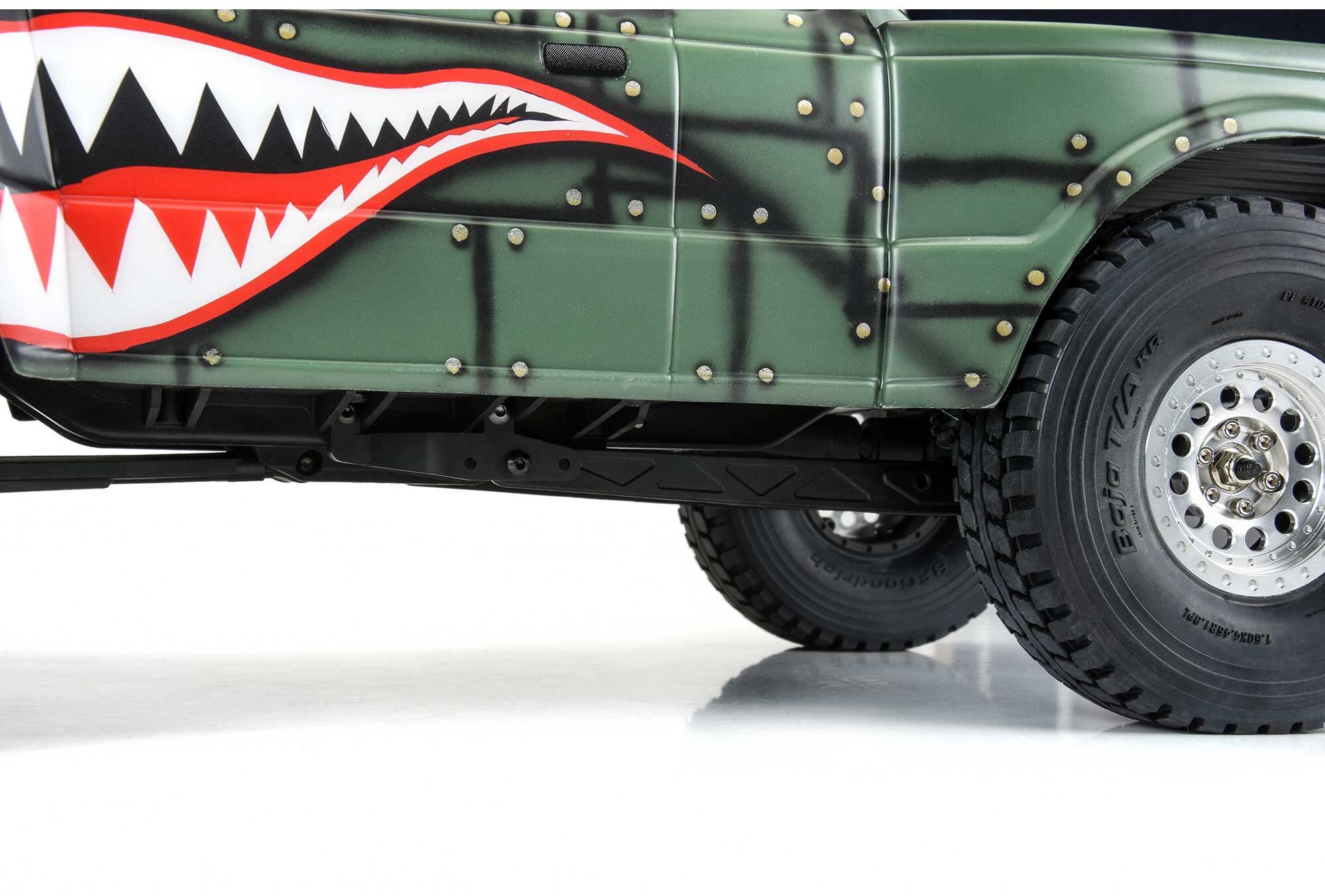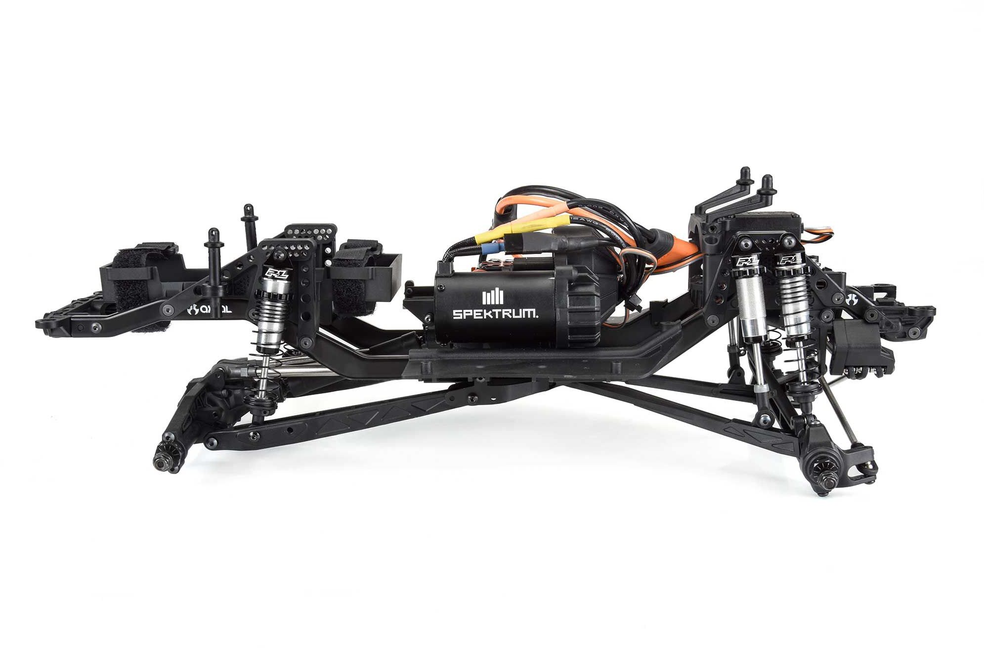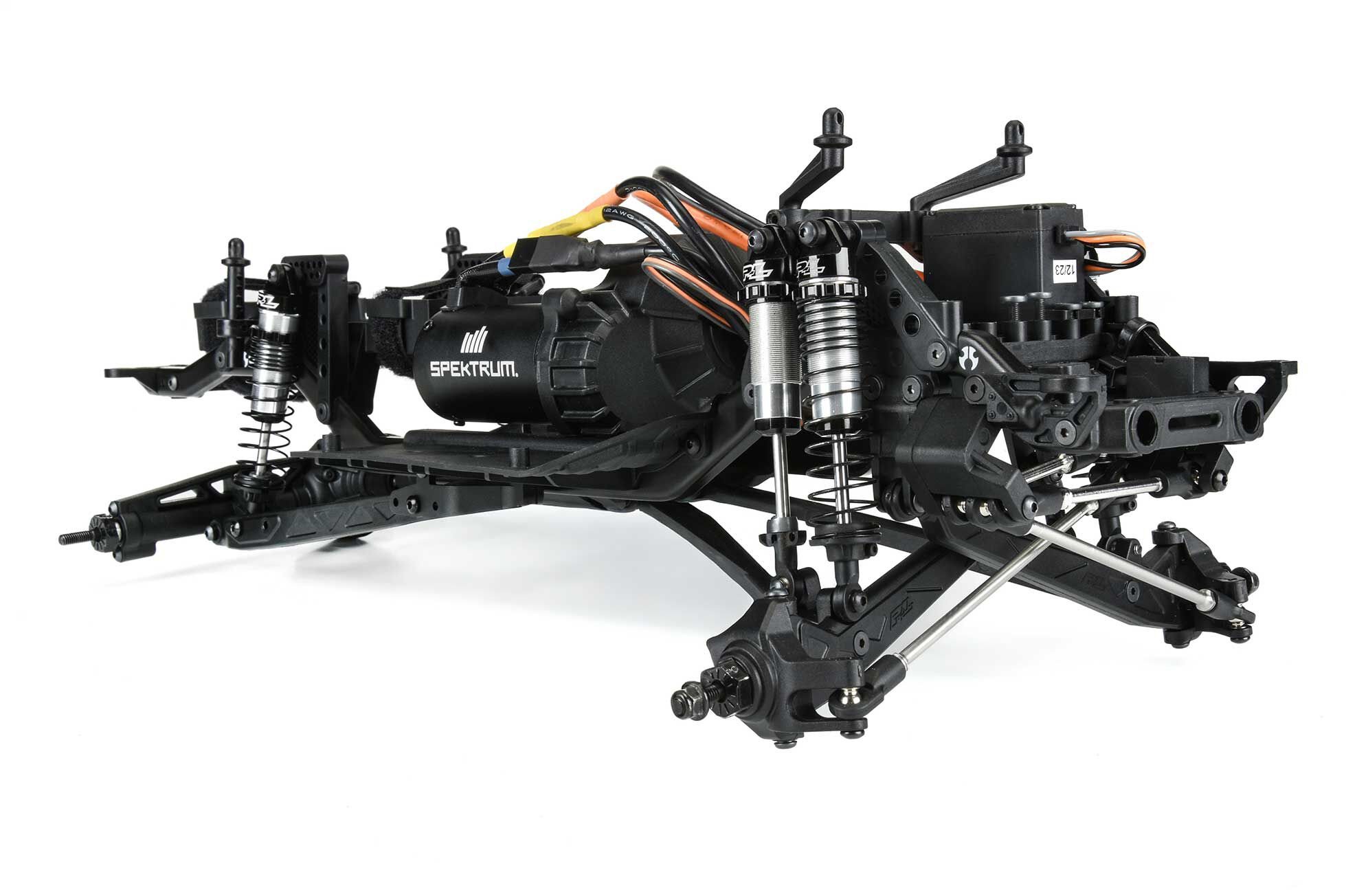 At the front, extended “I-beam” arms cross in an authentic X-pattern to control lateral movement, while radius arms tie back to the skid plate for rock-solid fore-aft stability. The setup even includes true swing set steering and a center-mounted radius arm, giving your SCX10™ III the realistic handling and suspension travel of a full-size desert truck.