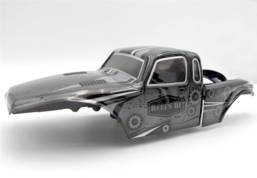 The REEFS RC "PLAGUE" 1/10th Crawler Competition body draws inspiration from the classic work trucks of the 40's. Made from 1.2mm Polycarbonate material, the durable body is designed with performance and recovery in mind. The long, rounded hood and smoothly contoured cab are key features that enhance the body's ability to recover if you end up on your roof. This versatile body set can be customized to fit your style. It can be used in a cab-only configuration, or you can attach the included rounded bed sides to further improve the likelihood of self-recovery (custom mounting required and not included).