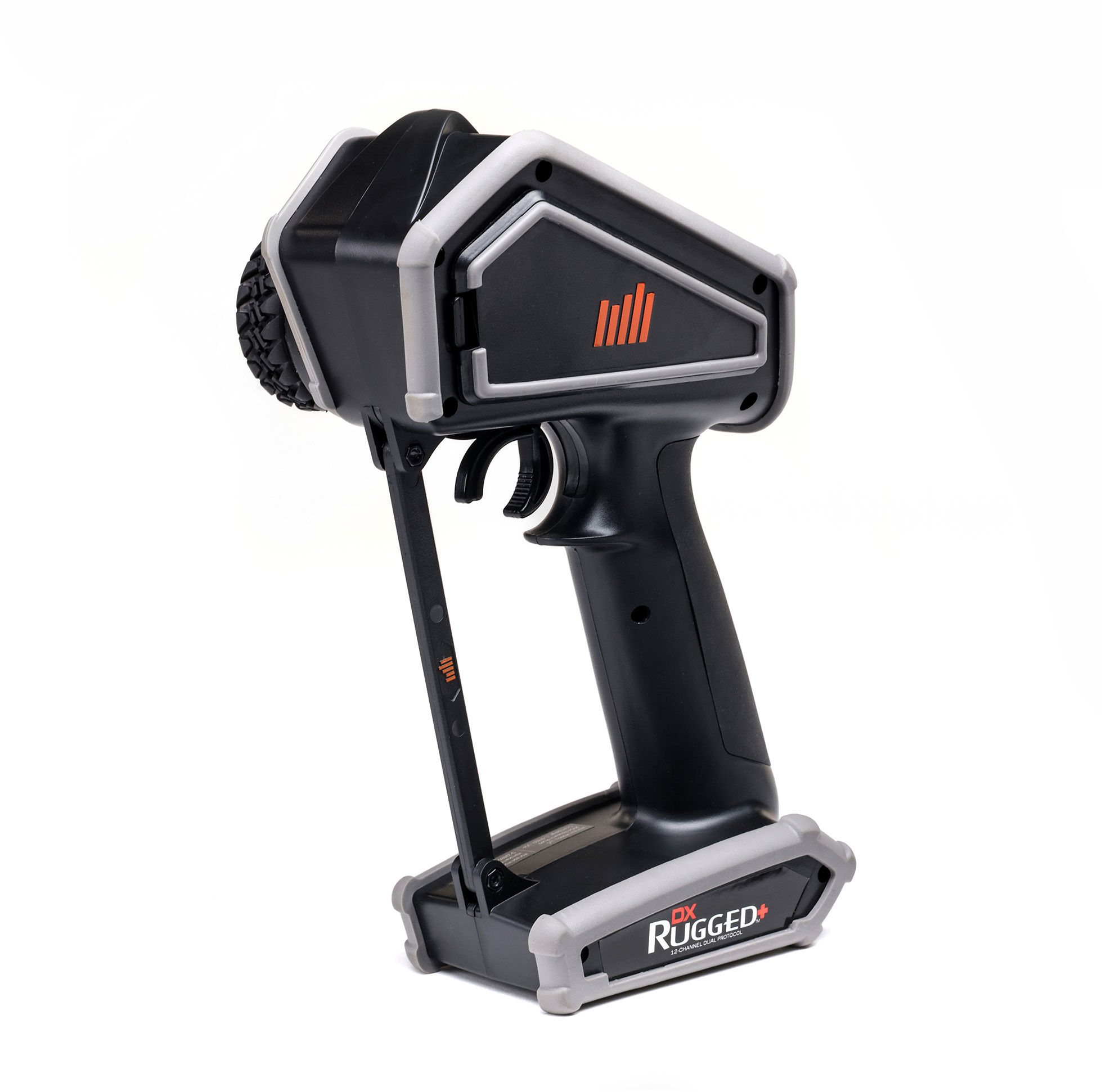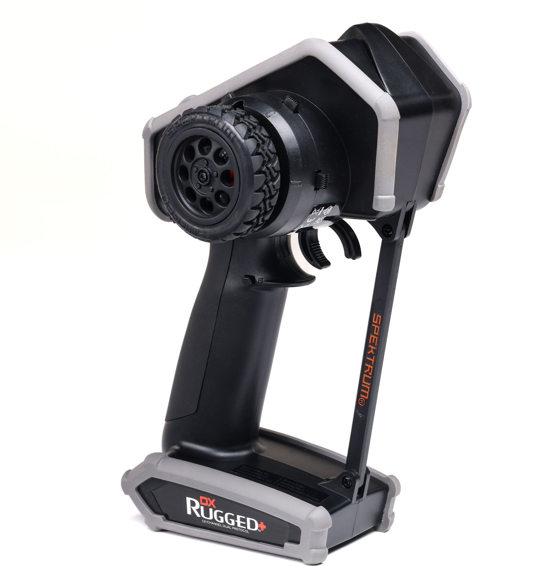 Your vehicles are extremely durable. Why isn't your transmitter? The Spektrum™ DX Rugged+ 12-channel surface transmitter redefines radio control with a level of durability to match the tough conditions off-roaders, bashers, and boaters encounter constantly. Like its predecessor, the DX6 Rugged, it features superb ergonomics. Additionally, it's built around frequency-agile DSMR+ 2.4GHz technology and Dual Protocol Compatibility allows easy binding with DSMR and SLT Protocol receivers. The result is a class-leading RC system with unmatched durability and other innovative features that unite with precision, versatility, and convenience you won't want to drive without.