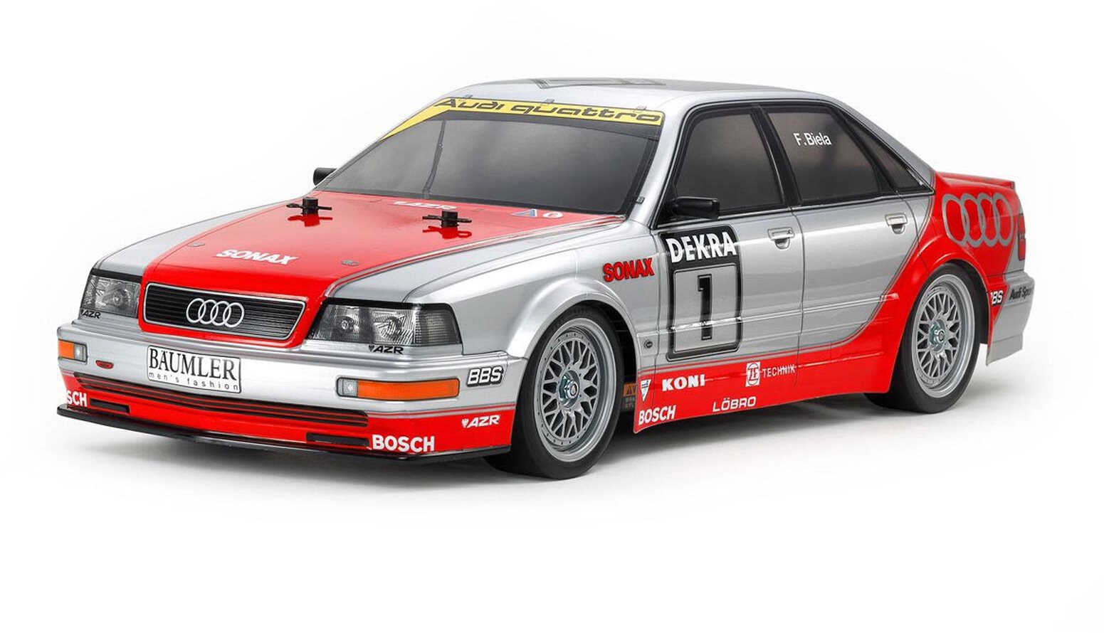 This Tamiya R/C kit recreates the classic 1992 Audi V8 Touring from 1992. We have faithfully recreated this classic racing car with a detailed polycarbonate body and mated it with our entry-level and user-friendly TT-02 chassis.