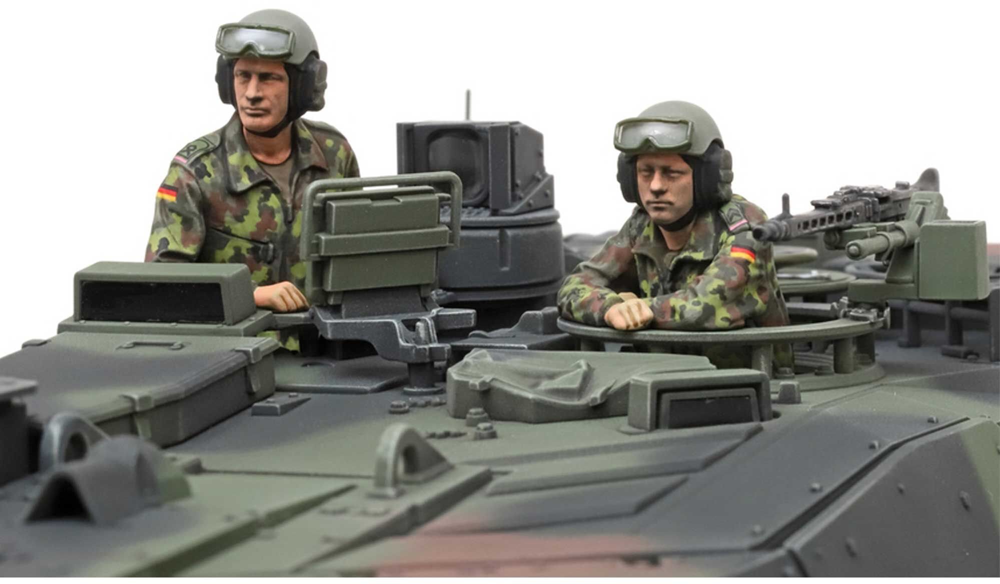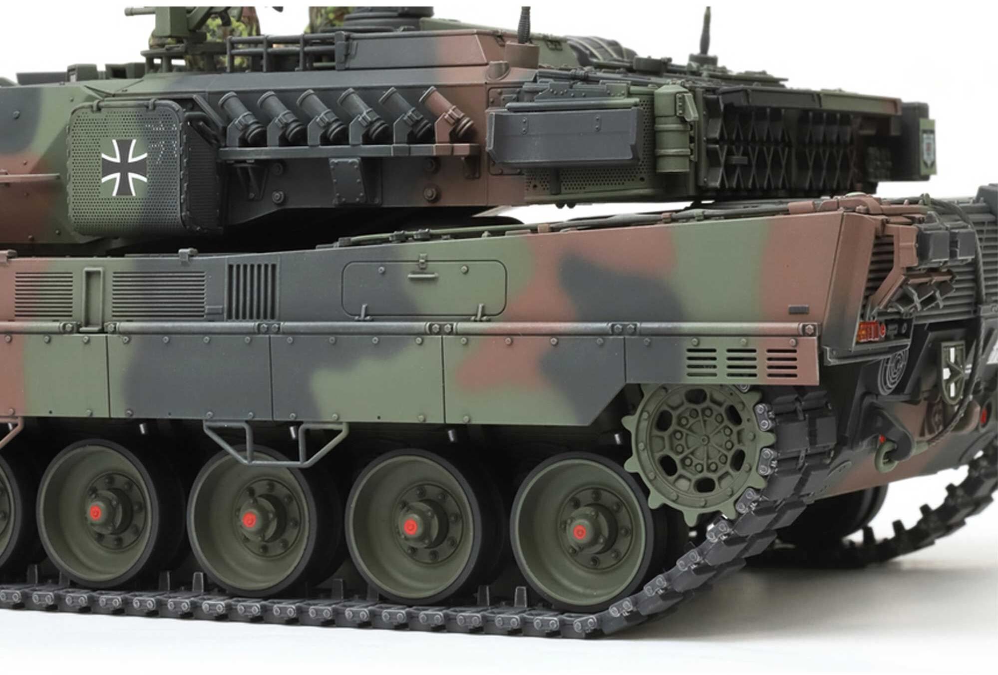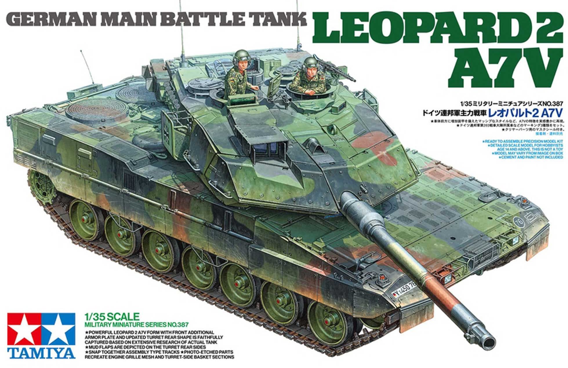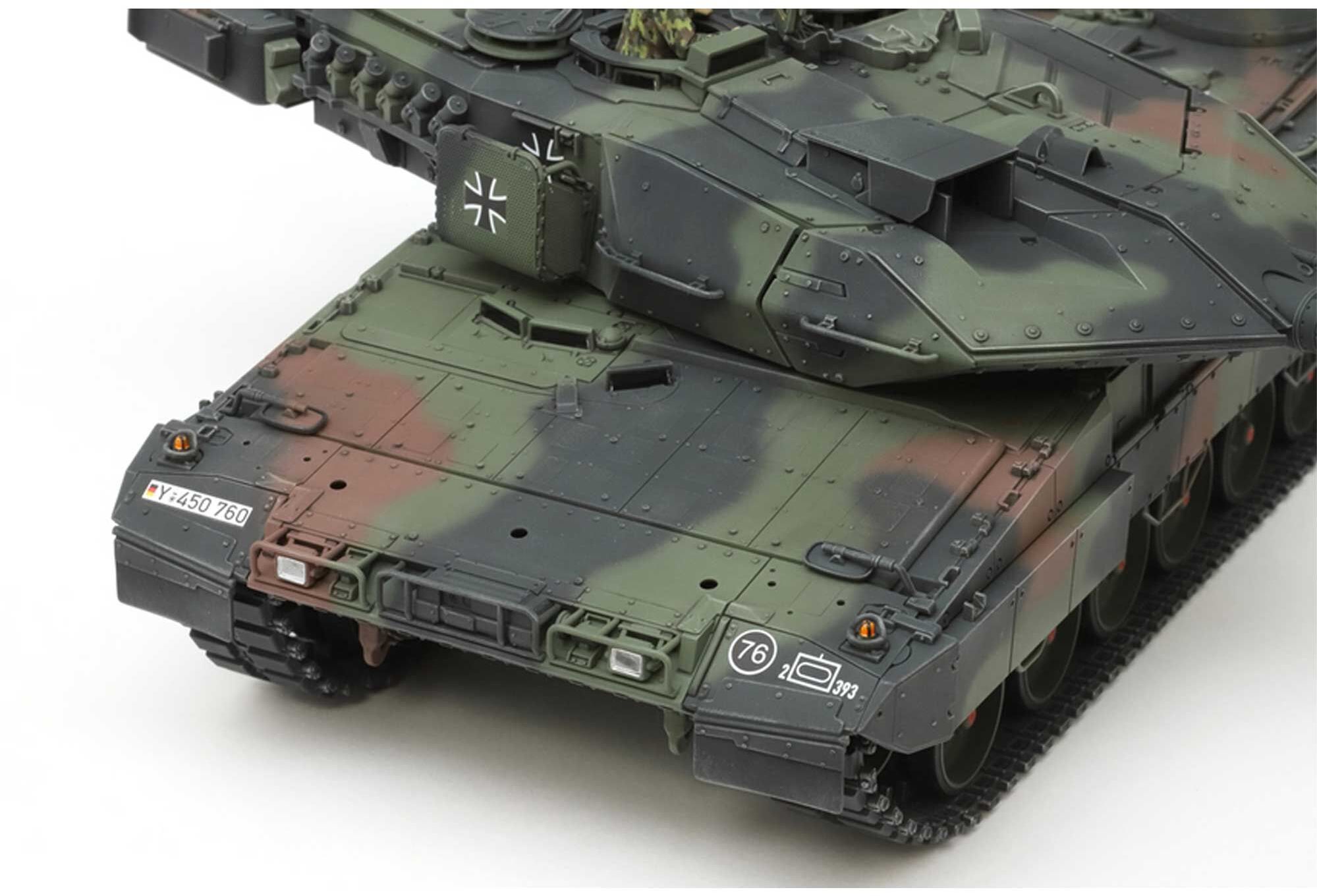 Compared to the Leopard 2 A6 model kit, which was released in 2004, this kit uses completely new parts and tooling. The Leopard 2 A7V is an improved version of A7 (A7 is improved version of A6 and the “V” in the A7V designation stands for “verbessert” (improved) ) and features additional hull front armor and side skirts for improved defense. The suspension was also improved to help deal with the tank's extra weight. The A7V inherits the A6's L/55 120mm gun, but with the updated shell, the A7V can take on enemy armor up to five kilometers away. Units began receiving the A7V in September 2021 and A7Vs saw further improvements such as turret-top stowage boxes and main sight visor.