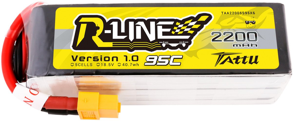 - Tattu 2200mah 5S 95C 18.5V R-Line Lipo Battery with XT60 Plug For 7" Q