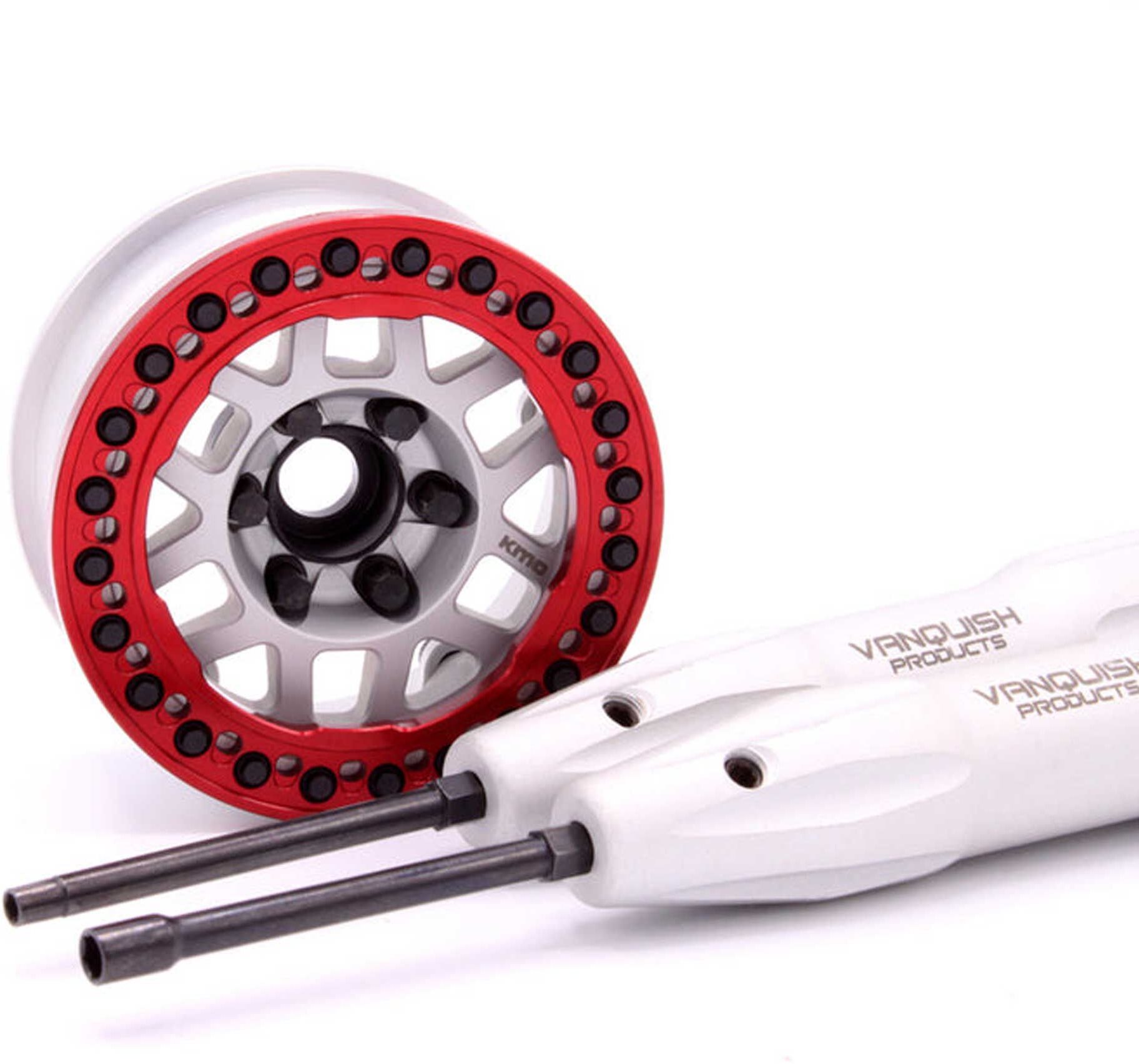 Vanquish Products Scale Hardware for wheels using 4-40 hardware. True Forged Scale Hardware package includes 12 pieces of 4-40 hardware, styled to replicate the look of hardware most commonly used on fullsize vehicle lugnuts. The size of the hex on the hardware has been maximized (3mm) to provide ultimate strength while installing or removing. Extended length is to be used with Vanquish Wheels, SLW Hub and one additional accessory (such as a center cap or brake weight).